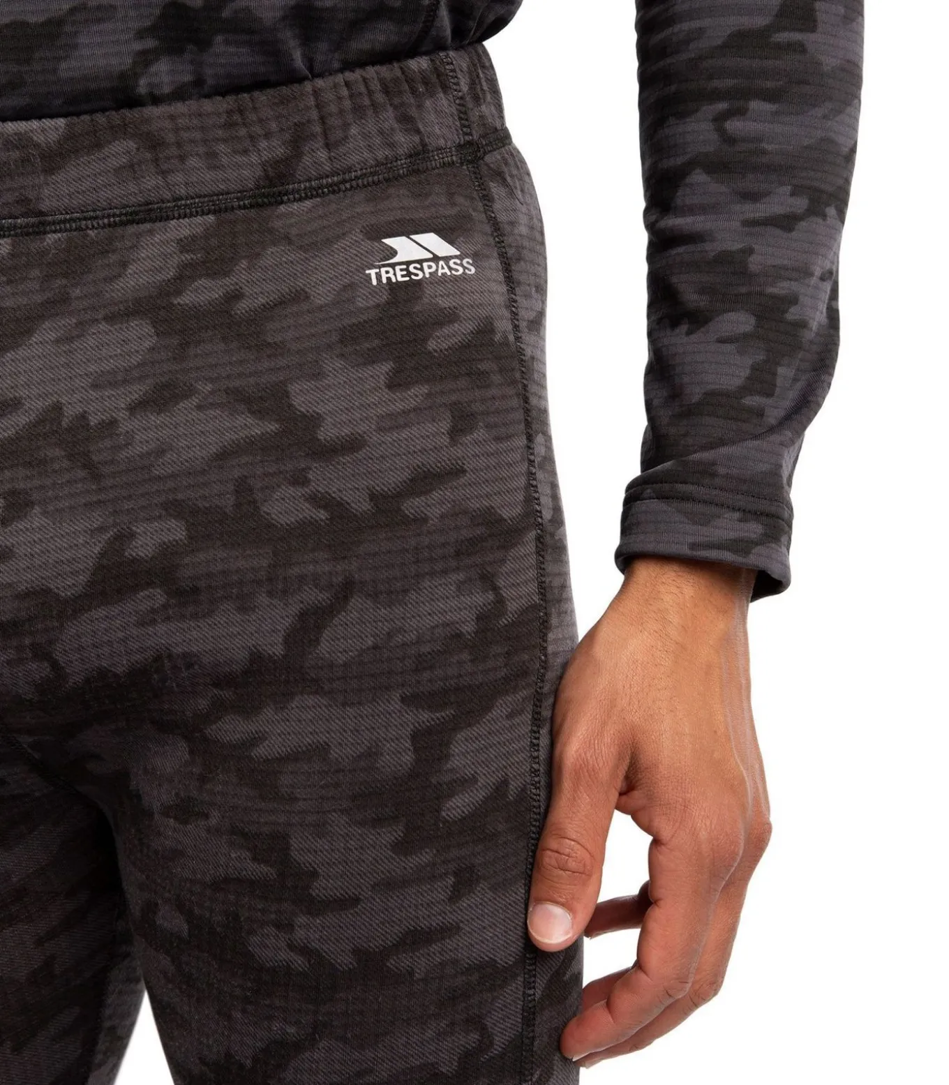 Dit base layer broekje van Trespass Mens Derren is gemaakt van een 92% polyester en 8% elastaan mix. De stof heeft een vierwegstretchconstructie en is gevoerd met fleece voor extra warmte en comfort. De camouflageprint heeft een raster en logo–ontwerp. De naden zijn plat gestikt om schuren te voorkomen. De stof is sneldrogend voor actief buitengebruik. De elastische taille zorgt voor een comfortabele en stevige pasvorm.