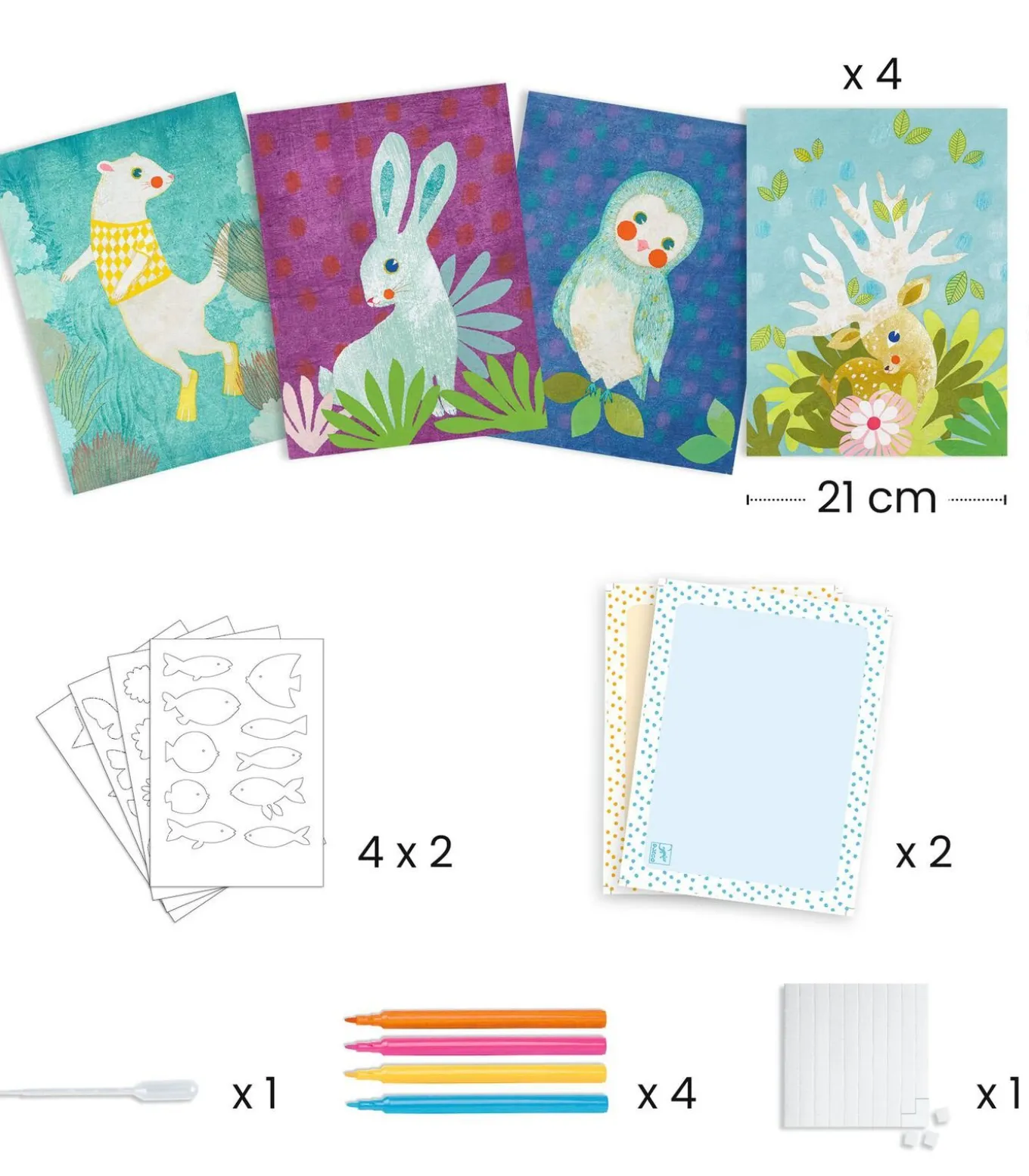 Djeco creatieve set papier knutselen met vloeipapier voor kinderenMet deze creatieve set van Djeco ontdek je het plezier van papier knutselen met vloeipapier! Kinderen vanaf 3 jaar beleven een unieke eerste ervaring door vormen los te maken van het vloeipapier en deze op absorberend papier te plaatsen. Met een stift en een pipet laten ze de kleuren prachtig uitlopen, waardoor elke creatie een klein kunstwerkje wordt.Zodra het kunstwerk is opgedroogd, kunnen kinderen hun kamer versieren met hun eigen creaties dankzij de bijgeleverde tweezijdige stickers. De set bevat alles wat je nodig hebt: papier, vloeipapier, penselen en kleuren. Ideaal voor kleine kunstenaars die graag experimenteren en hun fantasie de vrije loop laten!Extra informatieGeschikt voor kinderen vanaf 3 jaarBevat papier, vloeipapier, penselen en kleurenStimuleert creativiteit en fijne motoriekPerfect om je kamer te versieren met eigen kunstwerken