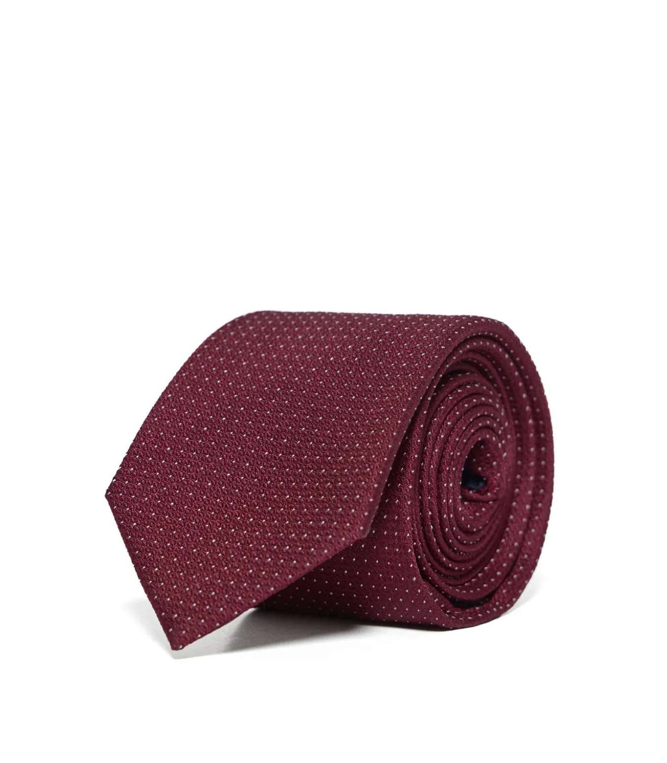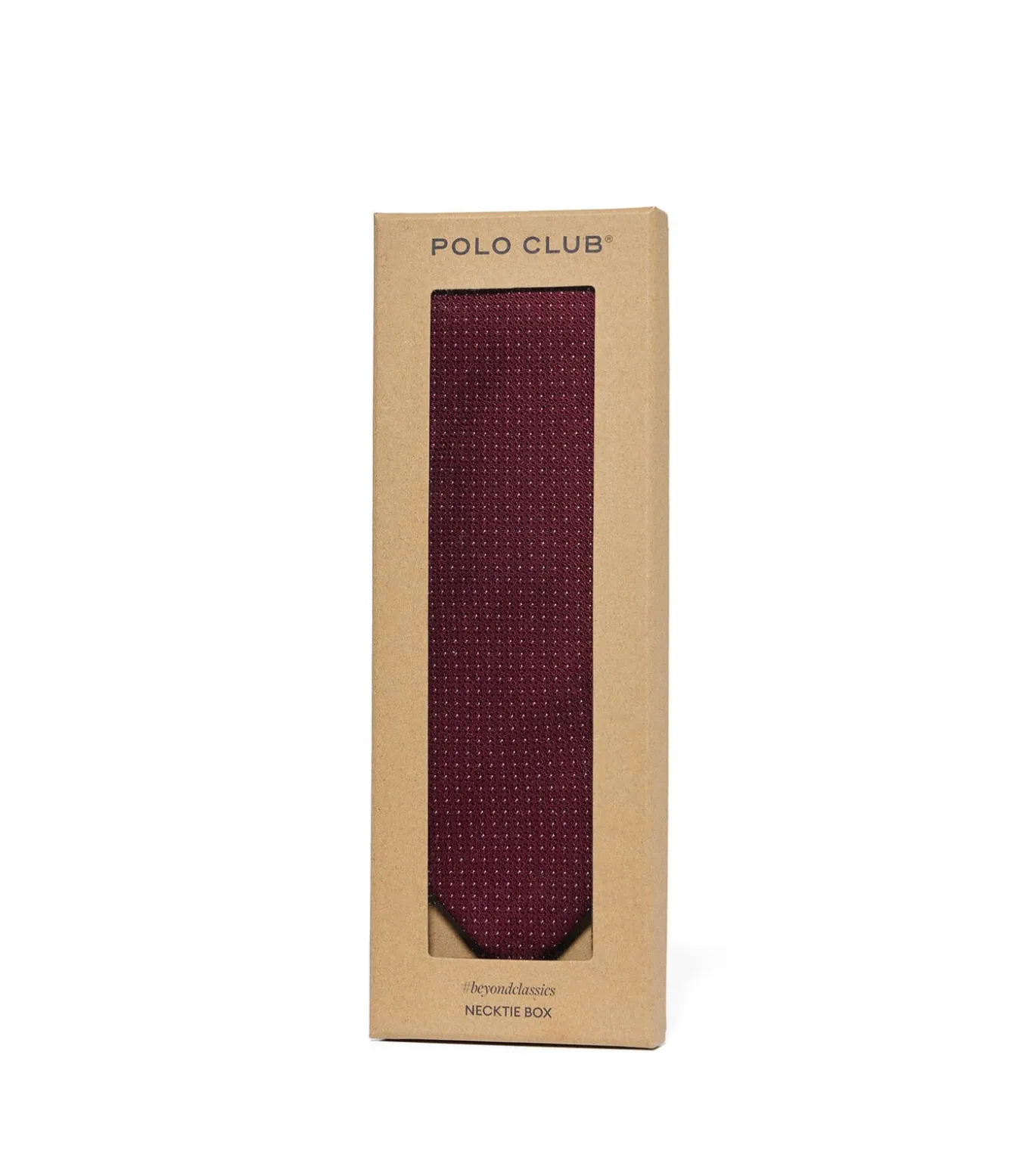 Deze zijden stropdas in bordeauxrode tinten heeft een gestippelde afwerking. Hij is perfect te combineren met eender welk hemd, met of zonder patroon, voor een moderne look. Ideaal voor vergaderingen of bijzondere gelegenheden. Geborduurd Polo Club–logo aan de achterzijde van de das en label met logo.