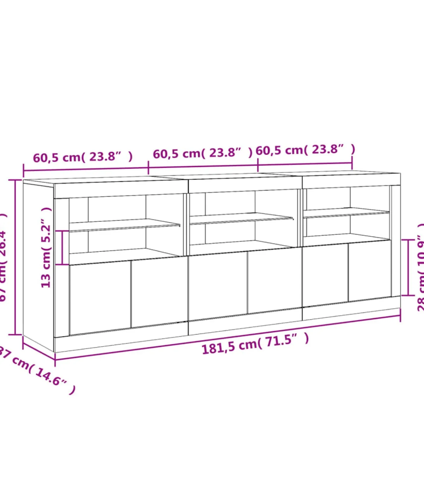 3 x dressoir: 60,5 x 37 x 67 cm (B x D x H)Legal Documents: