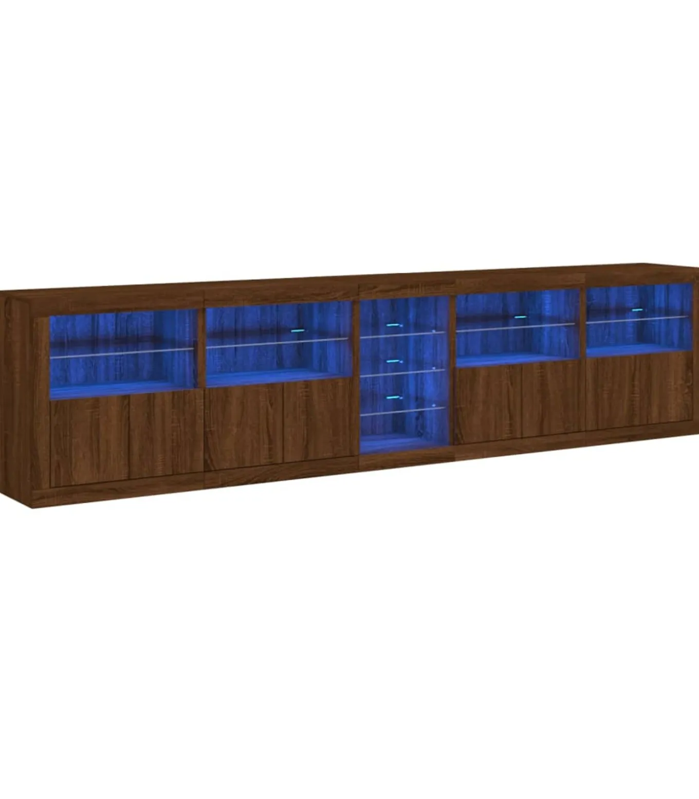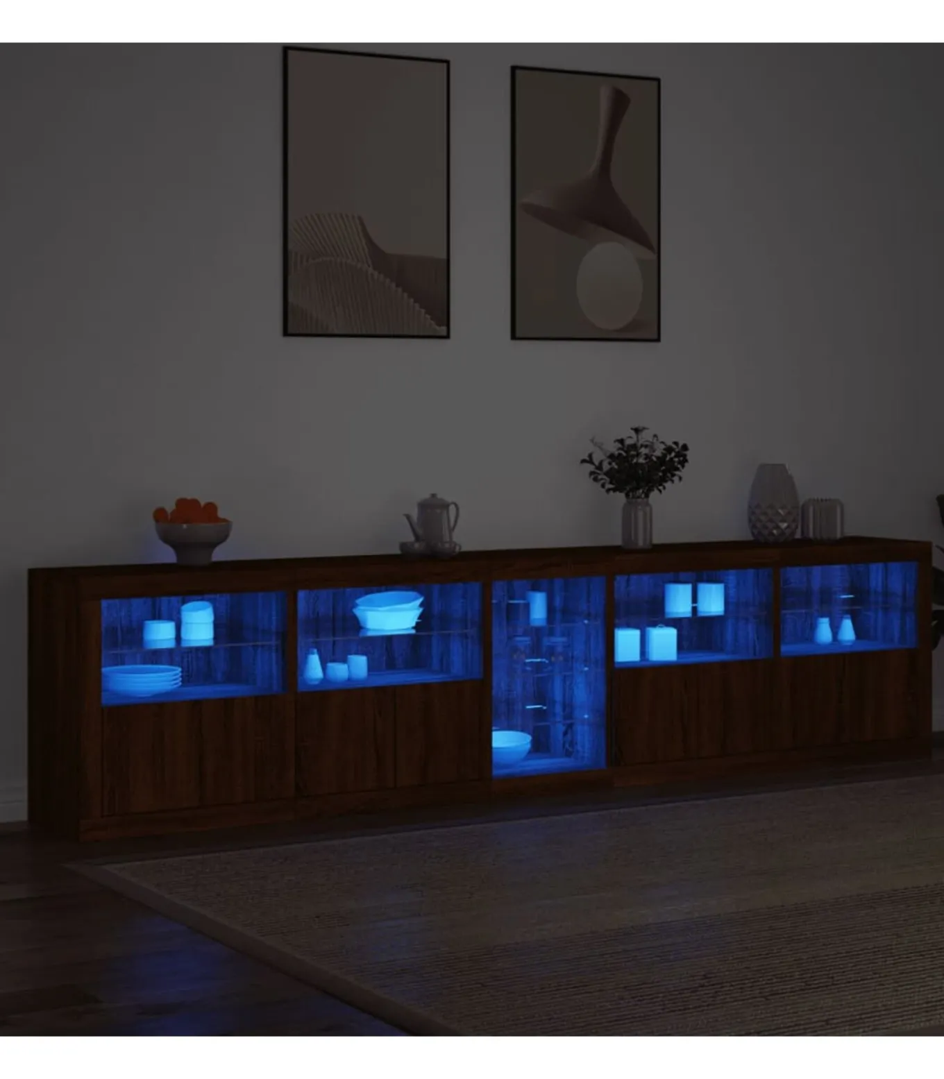 RGB LED–verlichting: het dressoir is voorzien van levendige RGB LED–verlichting. Dankzij verschillende aanpasbare menu’s kun je de kleur van de verlichting moeiteloos wijzigen en deze zelfs instellen zodat hij automatisch verandert. Deze LED’s versterken de moderne en trendy uitstraling van het dressoir.