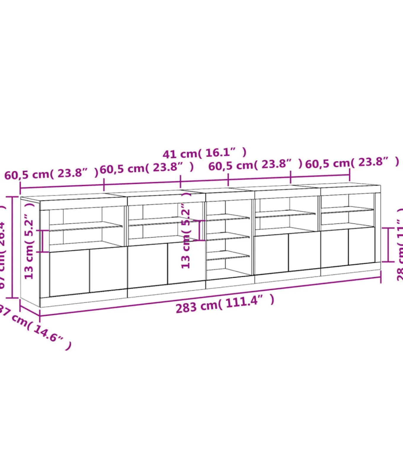 Totale afmetingen: 283 x 37 x 67 cm (B x D x H)