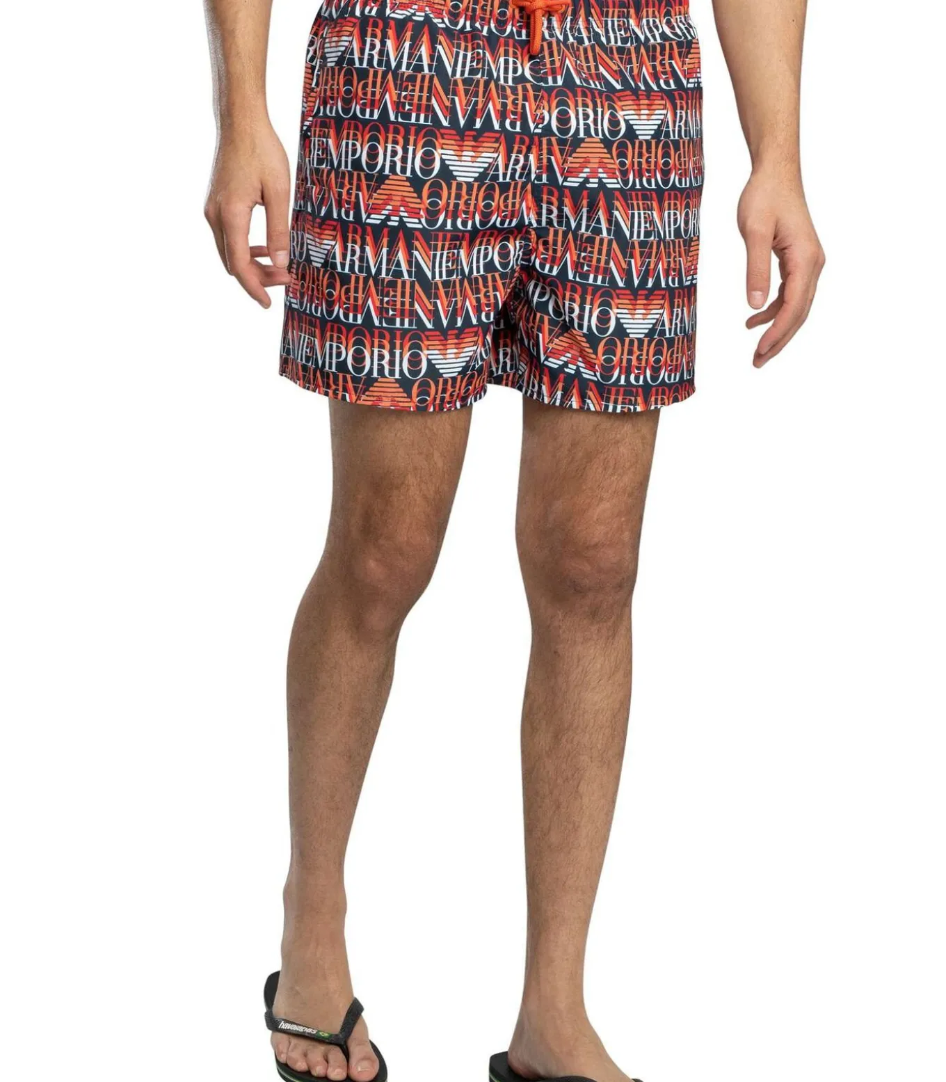 Val op in de Emporio Armani Echo Logo Swim Shorts in Macrologo Blue/Orange, een gedurfde en stijlvolle keuze voor het zomerseizoen. Deze zwemshorts zijn ontworpen met een elastische taille met trekkoord en bieden een veilige en comfortabele pasvorm, zodat u zich vrij kunt bewegen, of u nu zwemt of bij het zwembad ligt. De ademende meshvoering biedt extra ondersteuning en zorgt voor comfort de hele dag. Deze shorts hebben open zijzakken voor gemak en zijn voorzien van het kenmerkende Emporio Armani–merk voor een premium look. De Emporio Armani Echo Logo Swim Shorts zijn perfect voor strandvakanties, ontspanning aan het zwembad of watersporten en combineren luxe met bruikbaarheid.