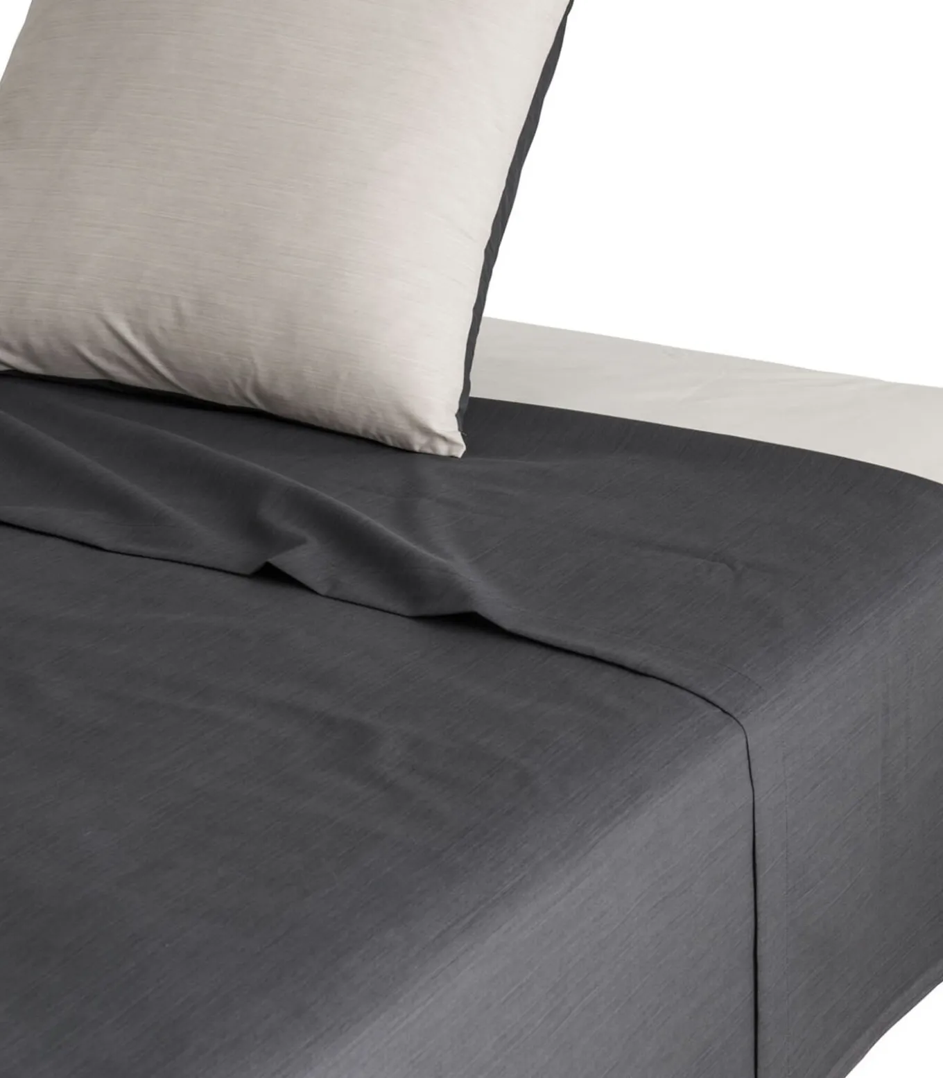Het laken is vervaardigd van een stof van viscose met fijne licht contrasterende strepen.