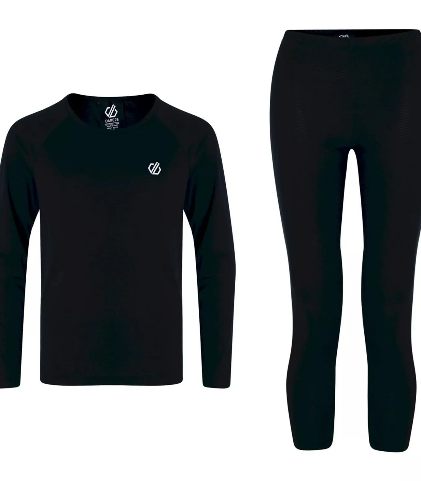 Deze basislagenset voor kinderen van Dare 2B heeft een top met lange mouwen met ronde hals en een broekje met logoprint. De stof is ontworpen met antibacteriële, vochtafvoerende en sneldrogende technologieën om het kind comfortabel te houden. De set bevat zowel een boven– als een broekje.