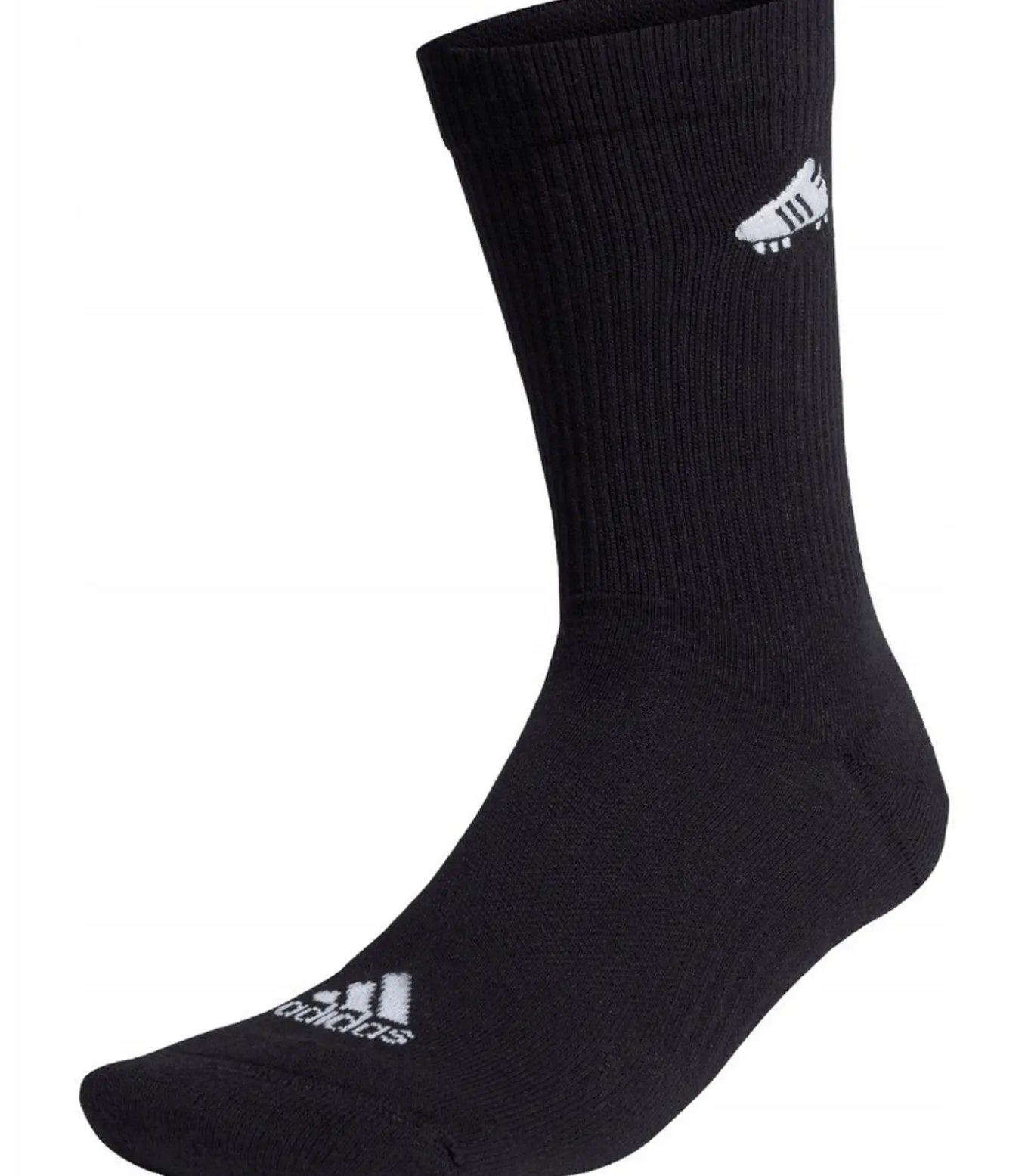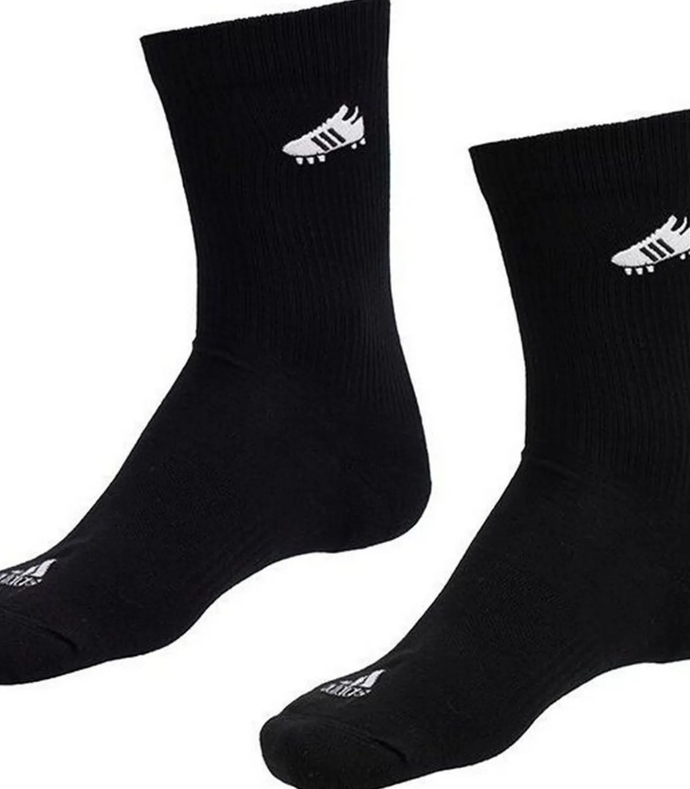Adidas Embroidered Zwarte Sokken met zachte aanraking, gemaakt uit 56% katoen en 40% hergebruikt polyester, met daarnaast 3% elastaan en 1% hergebruikte nylon. Het ontwerp toont een geborduurd Adidas–logo. De sokken hebben een elastiek deel en zijn in kuitlengte te snijden.