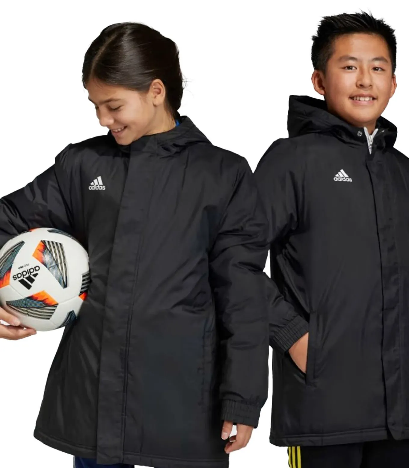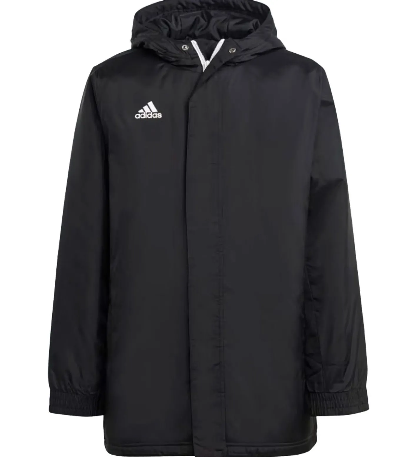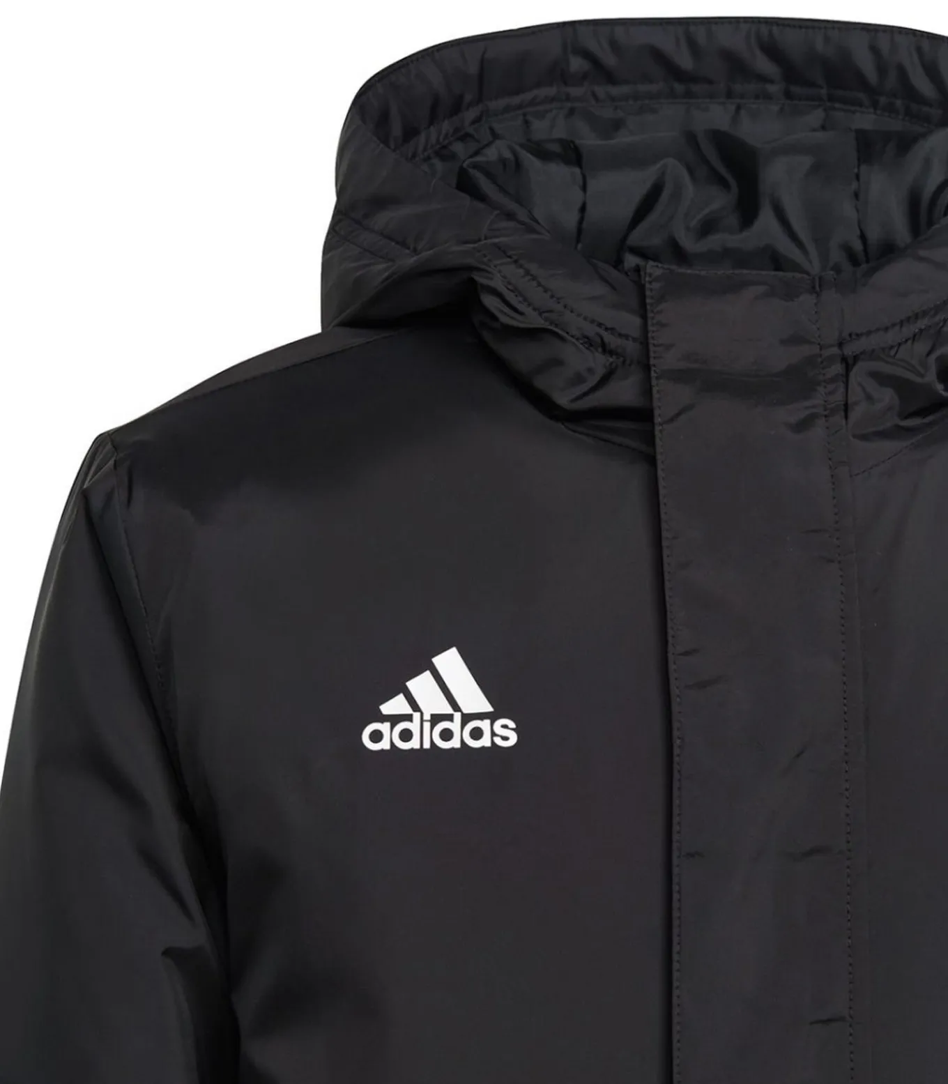 Adidas ENTRADA 22 – Zwarte jasje gemaakt van 100% polyester met een ontworpen logo en elastieke manche. Het heeft lus– en weltopknoping, een kapiteinshalslijn, langmouwtype en aanvaarbare kapspecificaties. Het jasje heeft twee zijzakken, een volledige ritssluiting, drukknoopsluiting en stormflap. De afmetingen passen voor kinderen tussen 6 en 16 jaar: 24, 25, 28, 30,5, 34 en 36 inch.