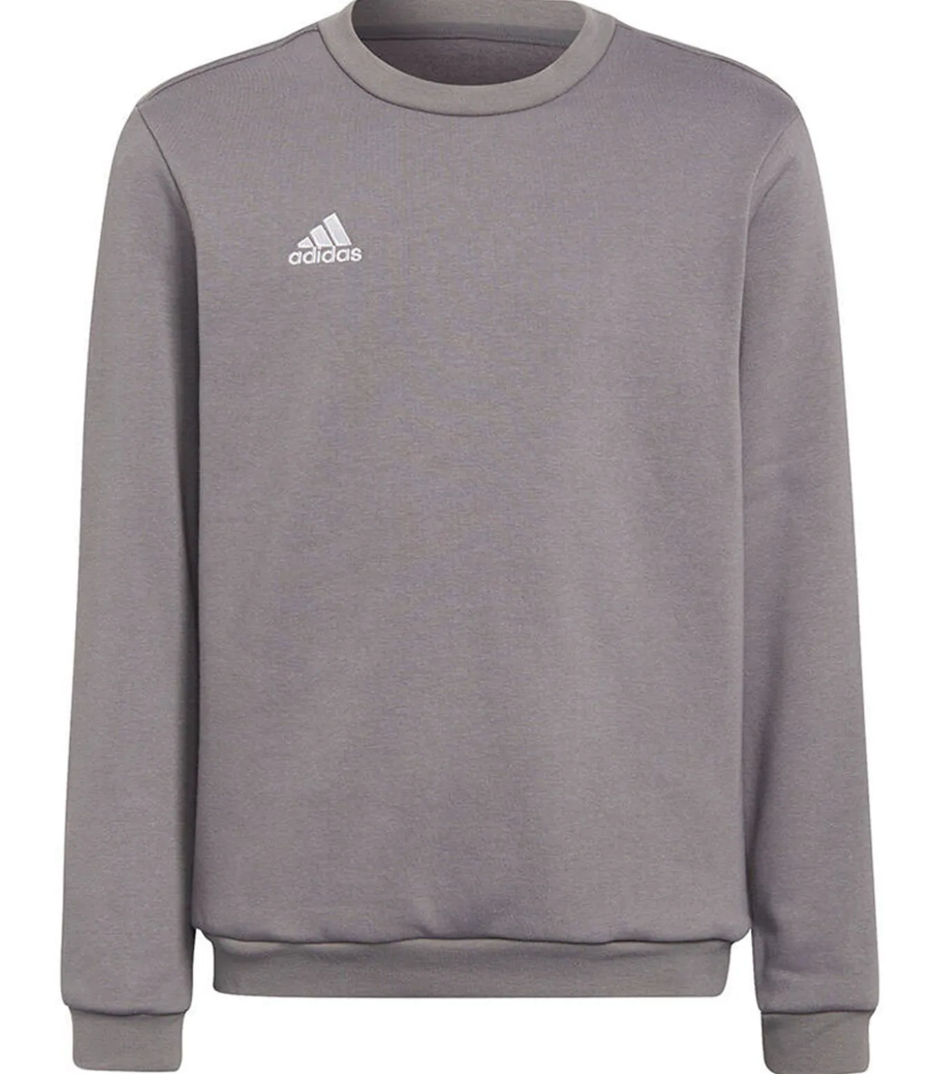 Adidas ENTRADA 22 – Grijze Sweatshirt gemaakt van 70% katoen en 30% gerecycleerd polyester, met een viltig oppervlak, geputteerde Adidas logo en elastische zomen. De hals is crew neck, de manchetten zijn elastisch en het heeft langarmen. Dit sweatshirt is geschikt voor regelmatig gebruik en heeft aan de achterkant een trekband als bevestiging. Er zijn drie maten beschikbaar: 28 in. (9–10 jaar), 25 in. (7–8 jaar) en 24 in. (5–6 jaar).