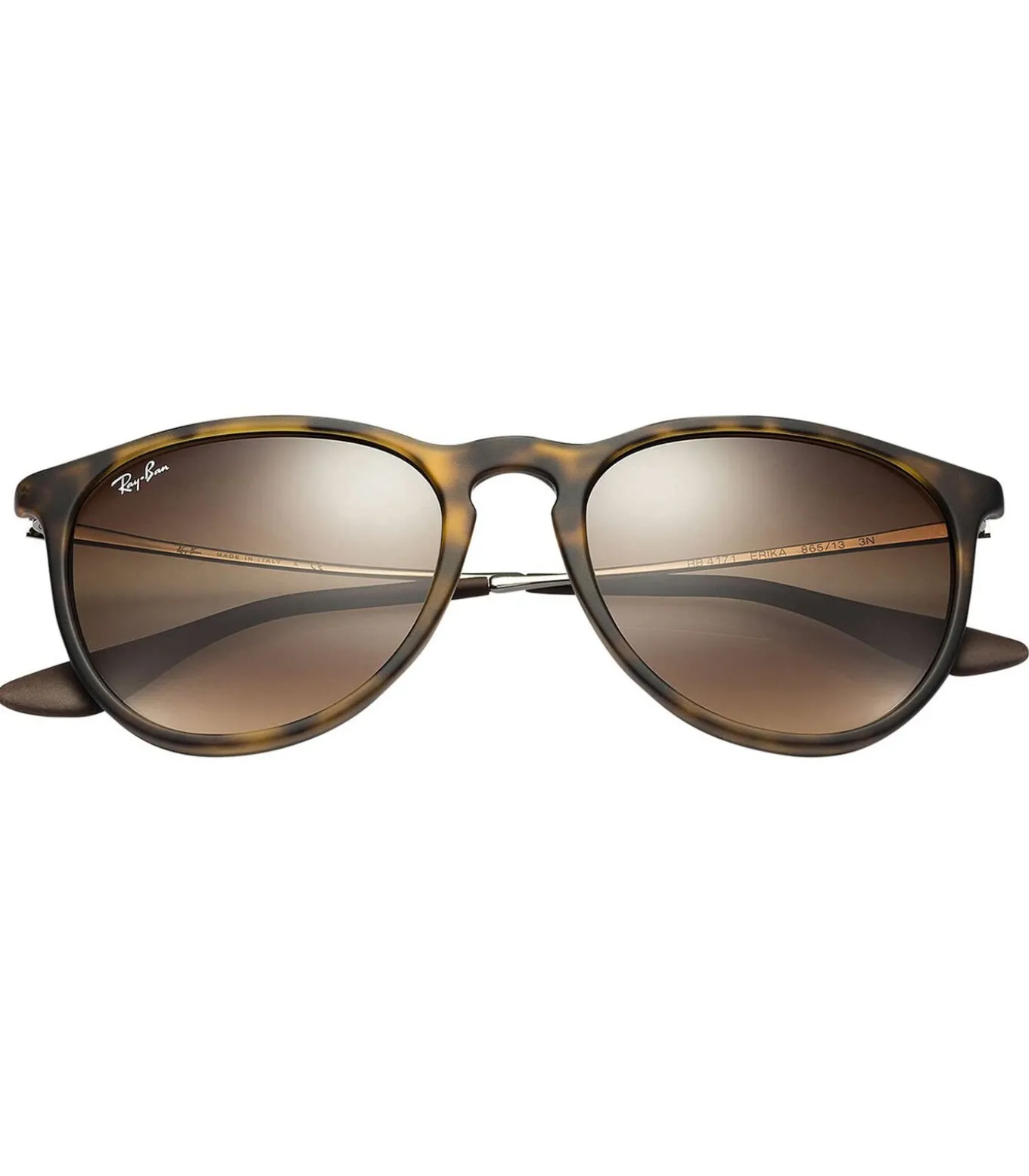 De Erika Nylon–zonnebril van Ray–Ban heeft frames met een gevarieerde opaline–kleur en moderne flitspiegellenzen, en heeft een lichtgewicht frame, subtiele branding en een harde hoes. Deze zonnebril is in bruine kleur en heeft ook het iconische Ray–Ban–logo.