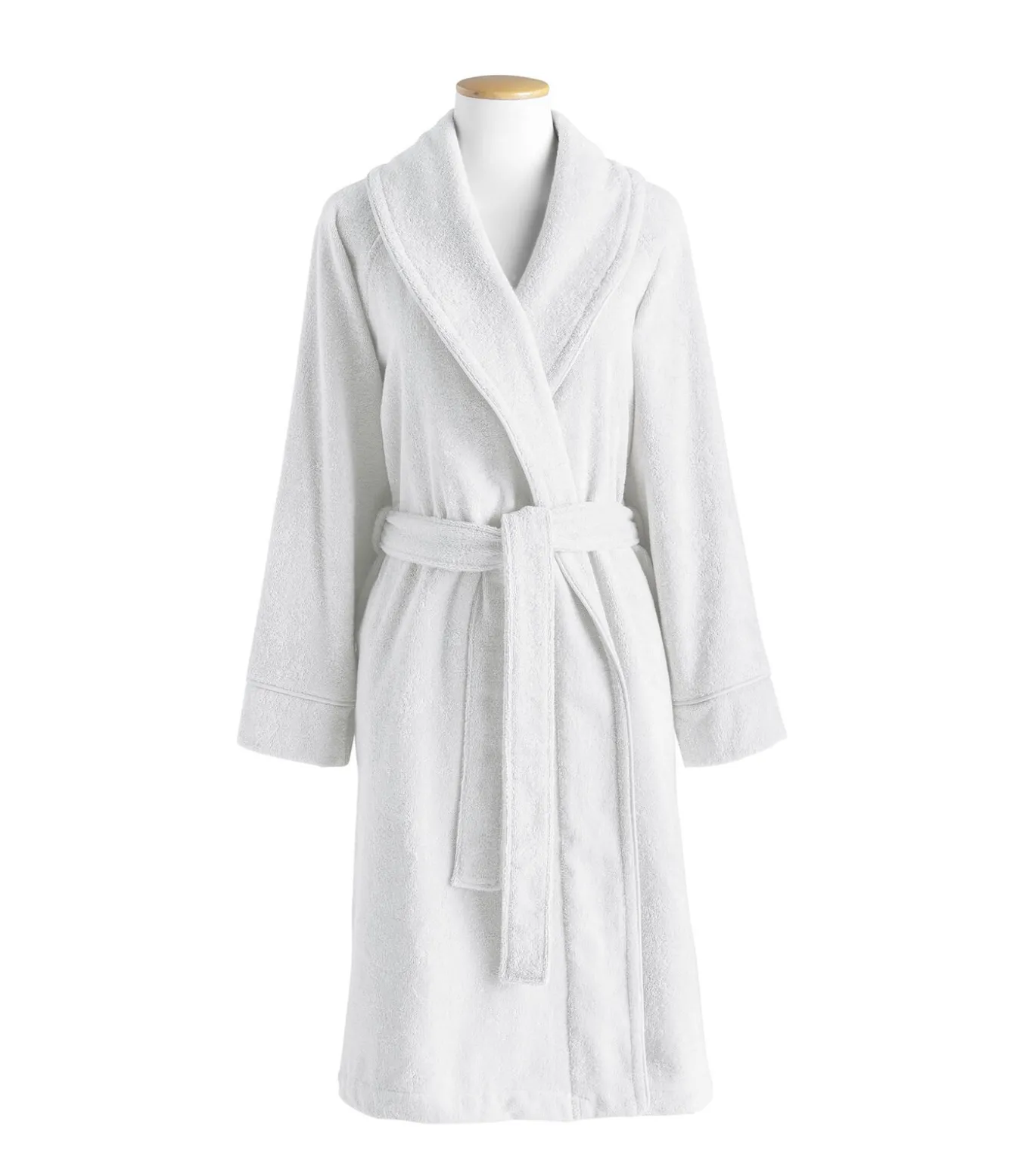Een effen badjas met een sjaalkraag van gekamd katoen en een gekeperde boord.