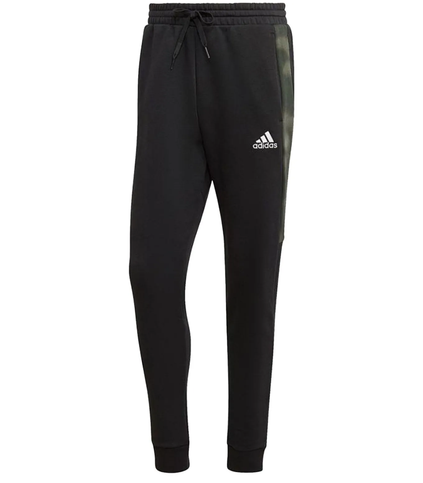 Adidas Essentials Joggingbroek Zwart is een sportjas gemaakt van 70% katoen en 30% gerecycled polyester. Het oppervlak is bedorven en watertijdbestendig. De ontwerp is camouflage, met borduurwerk logo’s. Het kan verstelbaar zijn en heeft elastiek en coördje. Het past standaard en is onderdeel van het duurzaamheidsinitiatief “Beter katoen”.
