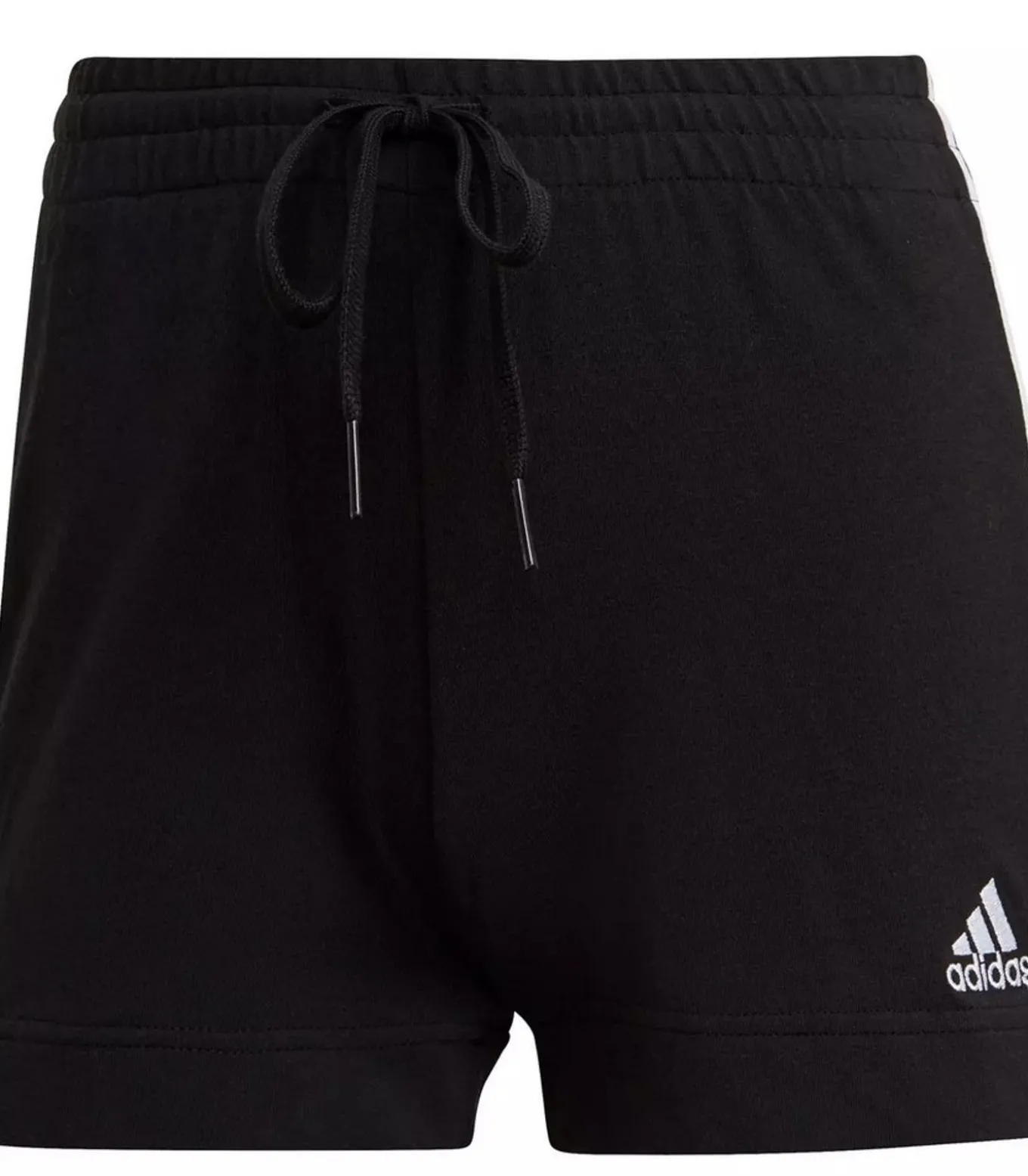Adidas Essentials Zwarte Korte Broek gemaakt van 93% katoen en 7% elastaan met een single jersey soft touch stof. Het ontwerp vertoont contrastende strepen en het logo, aan de tailleband is koord en elastisch. Er zijn splitsels opzij. Deze broek past ideaal bij slankere lichamen.