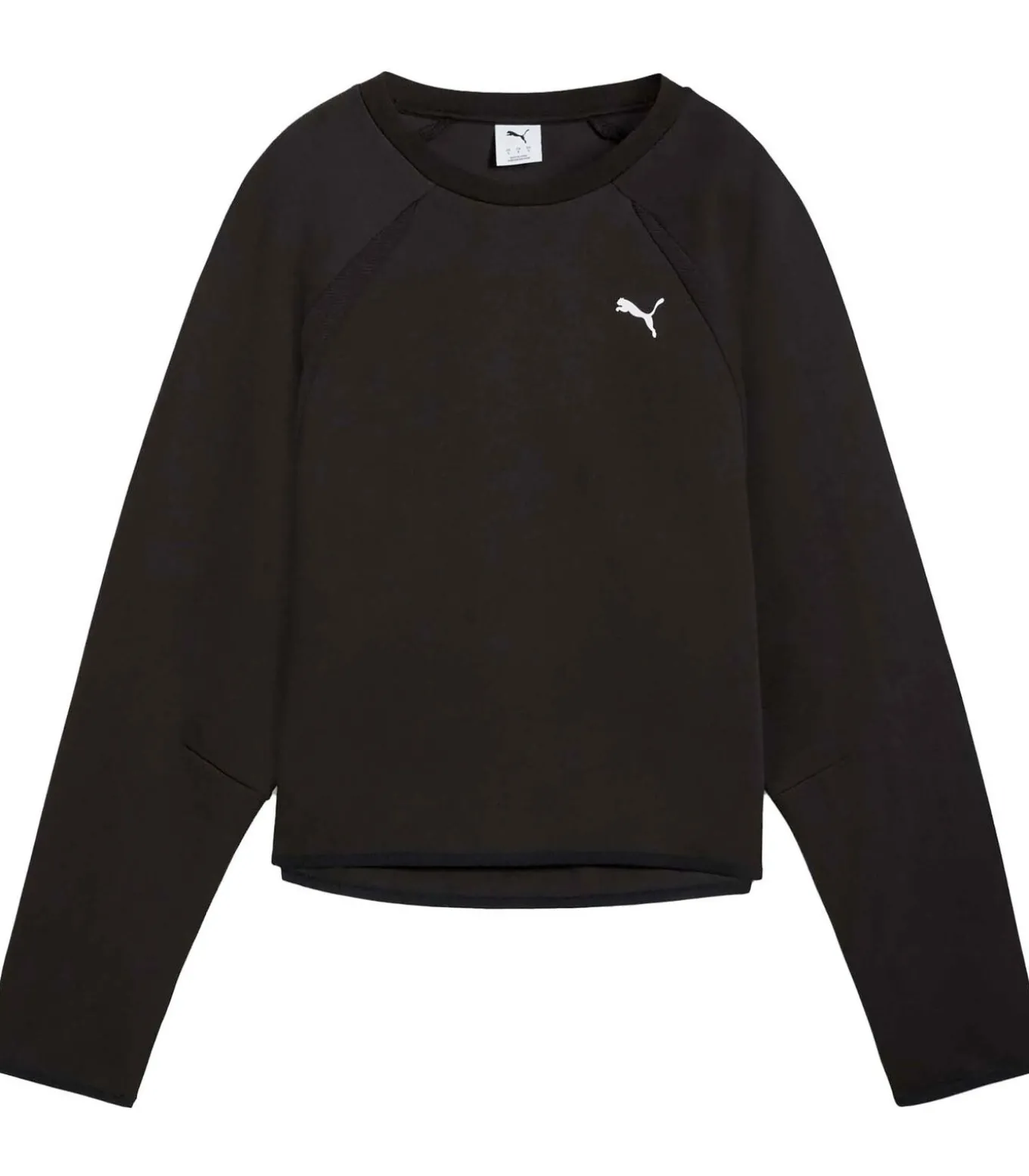 Kleur: PUMA Black. Samenstelling: Buitenkant: 77% katoen, 23% polyester; inzetstukken: 80% katoen, 20% polyester; kern: 97% katoen, 3% elastaan. Mouwen: Lange raglan. Halslijn: Ronde hals. Lengte: Kort. Pasvorm: Comfort. Details: Dames sweatshirt met ronde hals met dryCELL–technologie voor vochtregulatie, zijzakken waarvan één met rits, raglanmouwen en Evostripe–lijn met iconische Formstrip voor maximale bewegingsvrijheid. Duurzaamheid: Gemaakt met minimaal 20% gerecycled materiaal. Gebruik: Ideaal voor een sportieve en functionele look, perfect voor lichte trainingen en dagelijkse activiteiten.