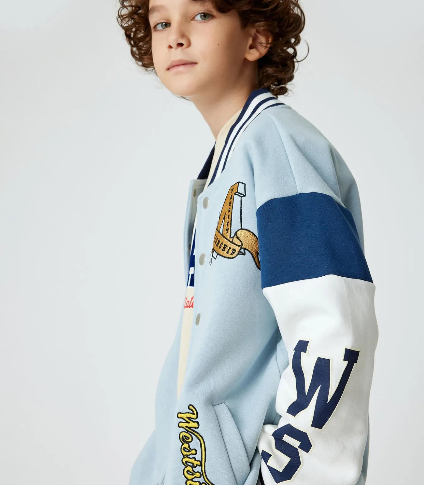 Bci–katoen Drukknoop gedetailleerd Wikkelborduurwerk College Extra groot Bomber Fleto dubbele zak Normale lengte Lange mouw Jas kraag Jasje