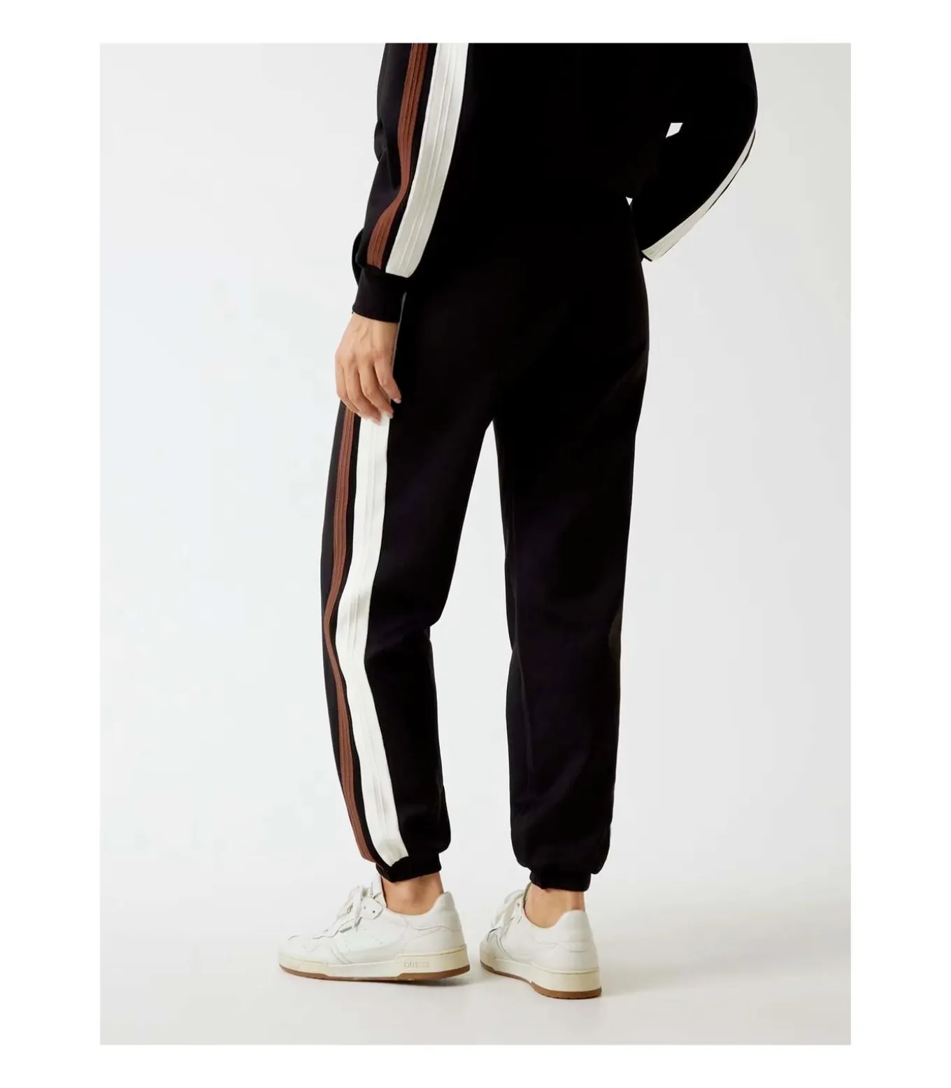 Kleur: Jet Black Samenstelling: 86% polyester, 8% viscose/rayon, 6% elastaan Pasvorm: Normaal Taille: Geribbelde elastische tailleband met trekkoord Details: Joggingbroek van stretchviscosemix met contrasterende zijbanden, logo–opschrift aan de zijkant en elastische manchetten Duurzaamheid: Dit kledingstuk is gemaakt met gerecyclede componenten Gebruik: Perfect voor vrije tijd en ontspanningsmomenten zonder in te leveren op stijl