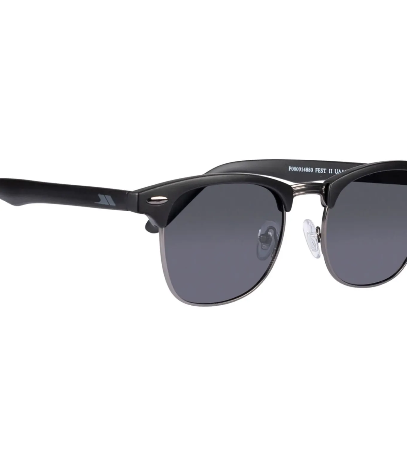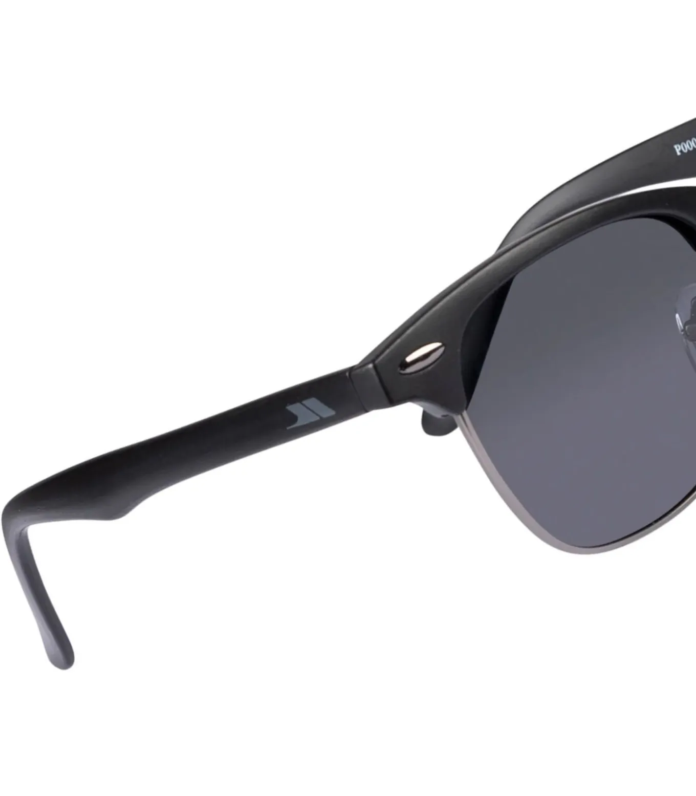 Deze unisex zonnebril voor volwassenen van Trespass heeft een frame van metaal en polycarbonaat met gepolariseerde rookglazen. De polycarbonaatlenzen bieden UV400–bescherming en hebben een logoprint. De zonnebril wordt geleverd met een draagtas en reinigingsdoekje voor onderhoud en opslag.