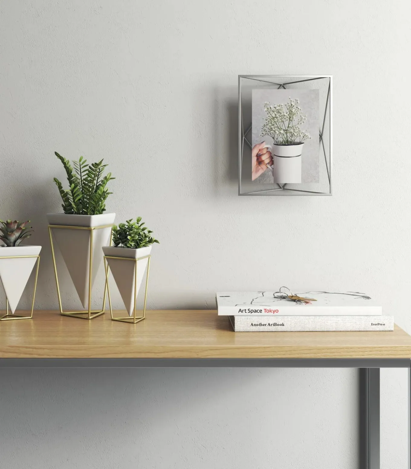 De originele geometrische draadfotolijst : Ontworpen door Sung Wook Park voor Umbra, Prisma is de originele geometrische draadfotolijst.