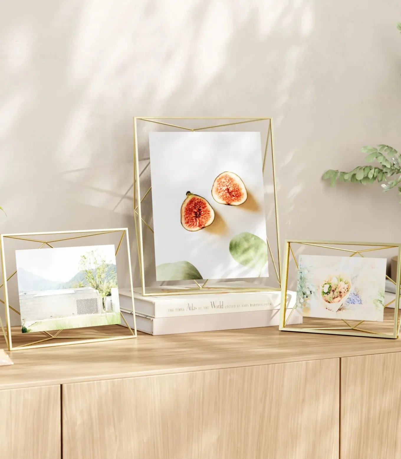 Modern fotolijstje: Geometrische fotolijsten van Prisma zijn zowel decoratief als functioneel en voegen dimensie toe aan een anders vlakke fotodisplay.