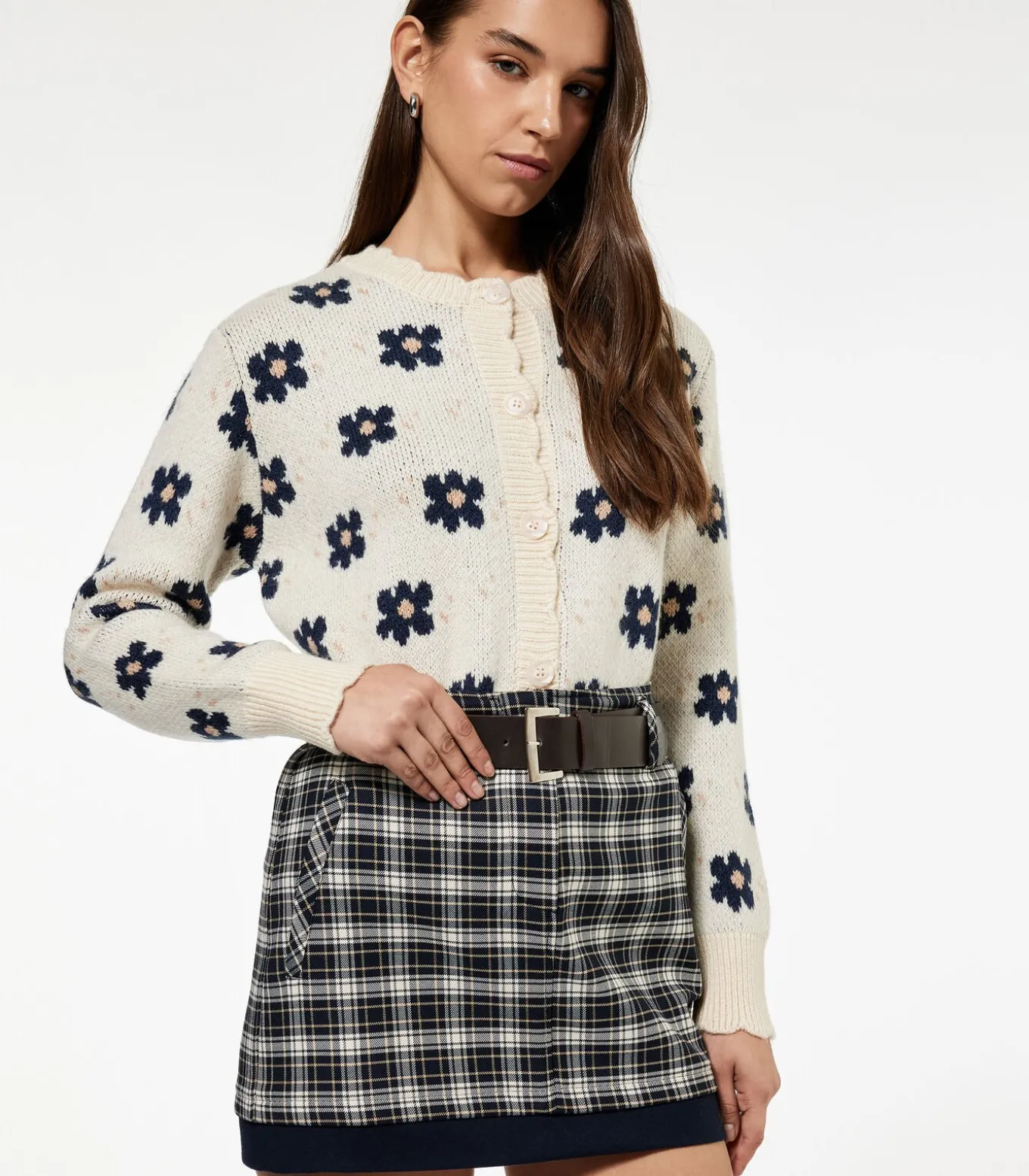 Gebreid vest met lange mouwen, ronde hals, jacquardpatroon en knoopsluiting.
