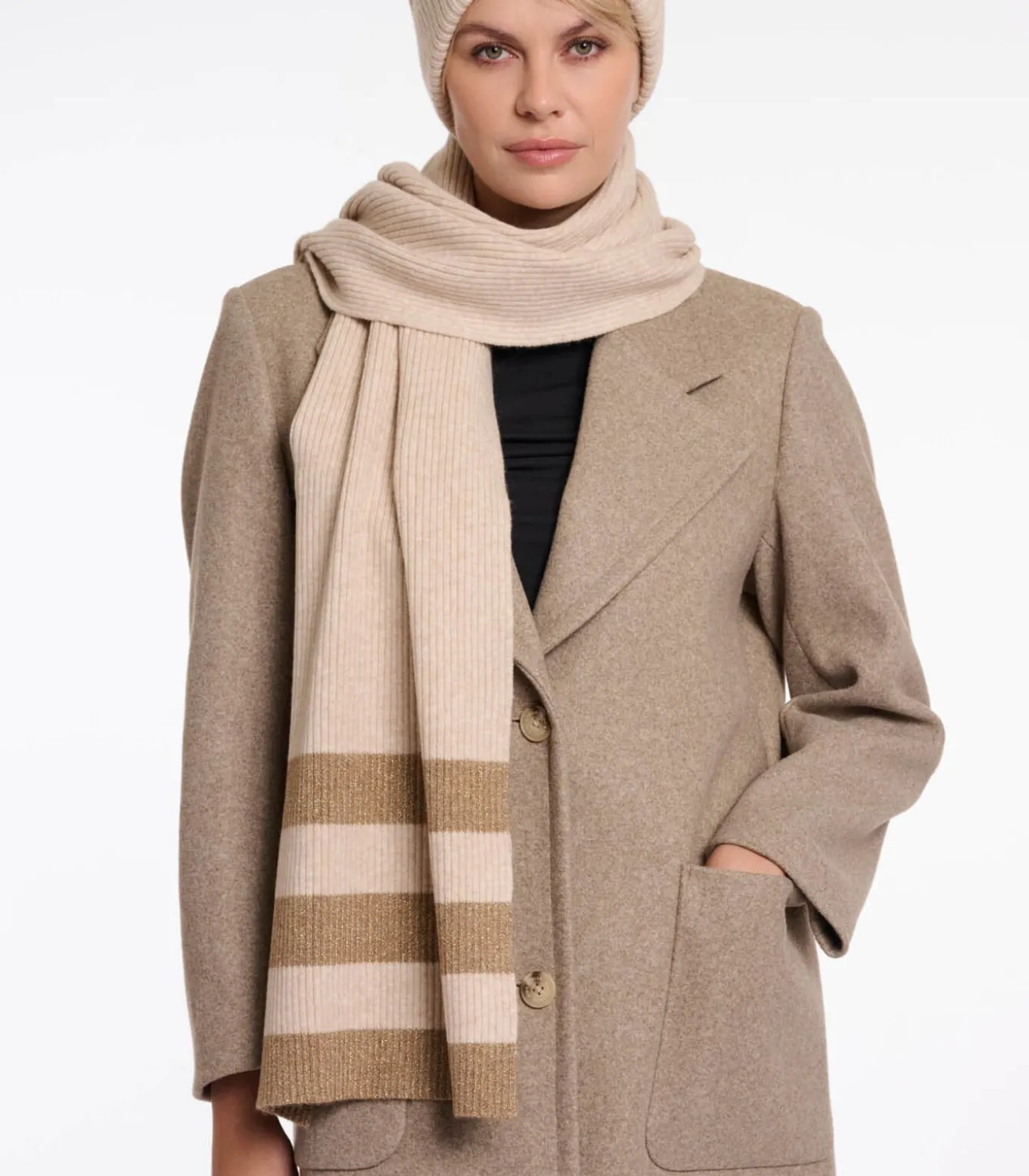 Laat je omhullen door warmte en onmiskenbare stijl met dit must–have accessoire. De luxueuze gebreide textuur met metallic vezels voelt ongelooflijk prettig aan en voegt een vleugje gezellige elegantie toe aan elke outfit.