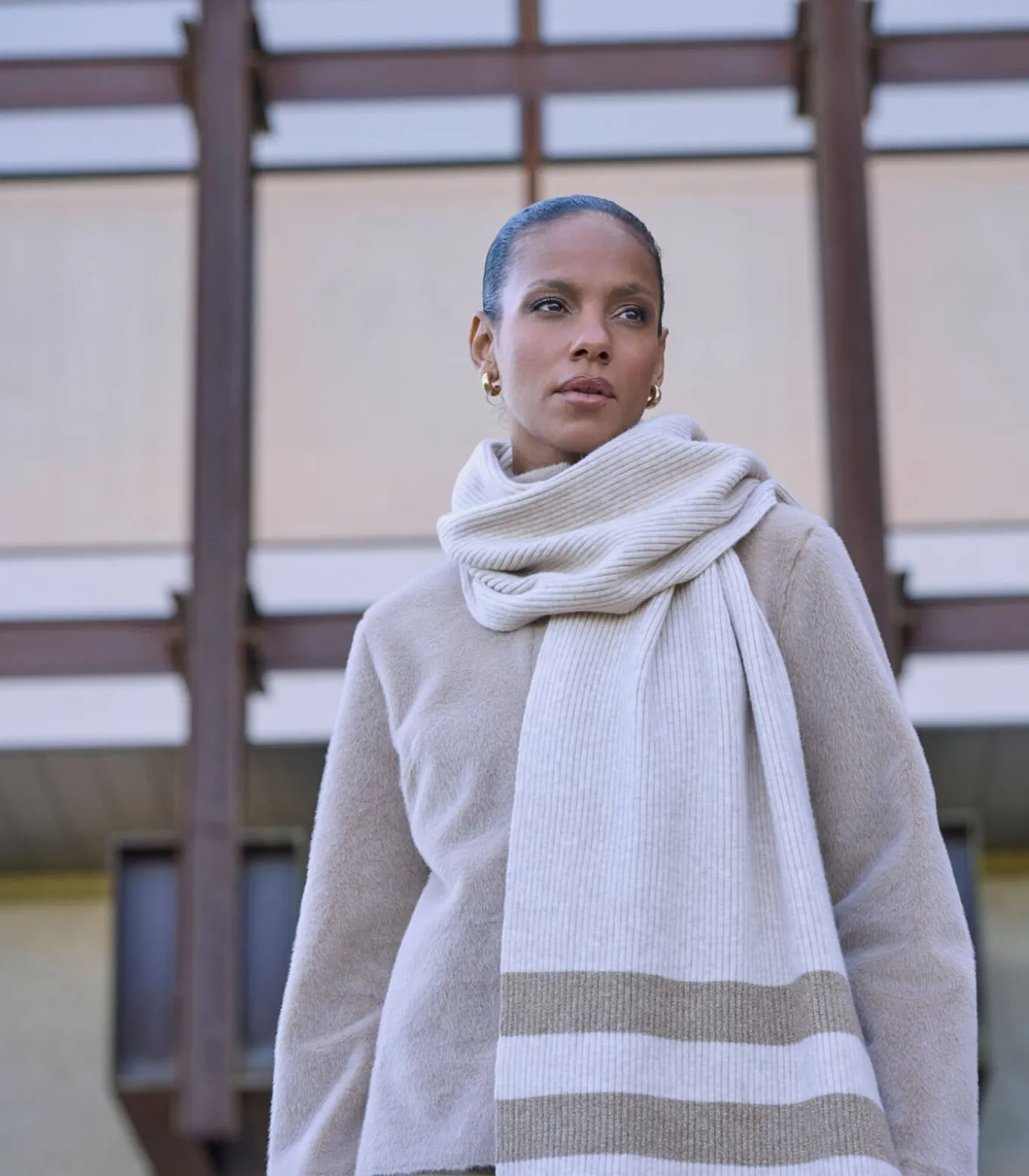 Gebreide gestreepte sjaal Birch melange OS