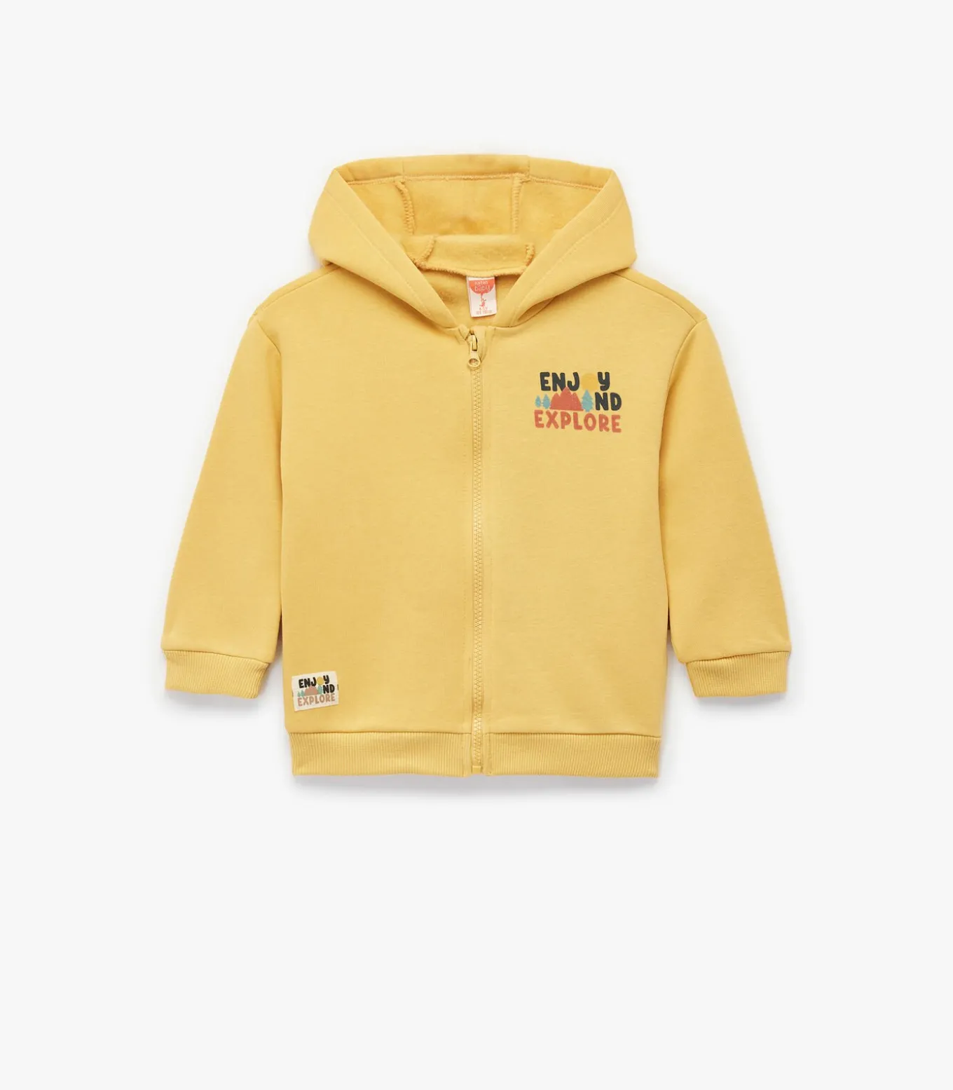 Deze gele baby sweatshirt met rits en capuchon biedt comfort en stijl voor je kleintje. De zachte stof zorgt voor een aangenaam draaggevoel, terwijl de lange mouwen en capuchon extra warmte bieden op koelere dagen. De vrolijke print op de voorkant maakt het aantrekkelijk voor kinderen en geeft een speelse touch aan elke outfit. Perfect voor dagelijks gebruik en avontuurlijke uitjes.