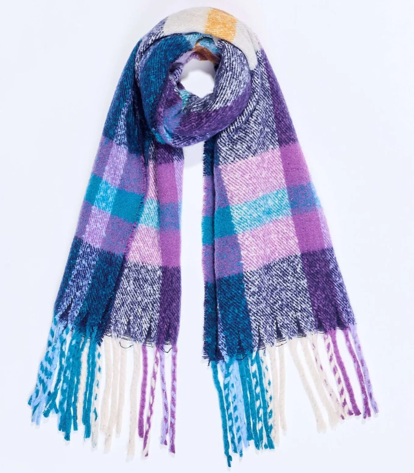 Rechthoekige geruite sjaal, zacht en warm, ideaal om uw winteroutfits op te fleuren met levendige en contrasterende kleuren. De afgewerkte franjes geven een casual en trendy touch, perfect voor een cosy en moderne stijl. Productdetails: rechthoekige geruite sjaal, afgewerkte franjes, afmetingen: 180 x 65 cm.