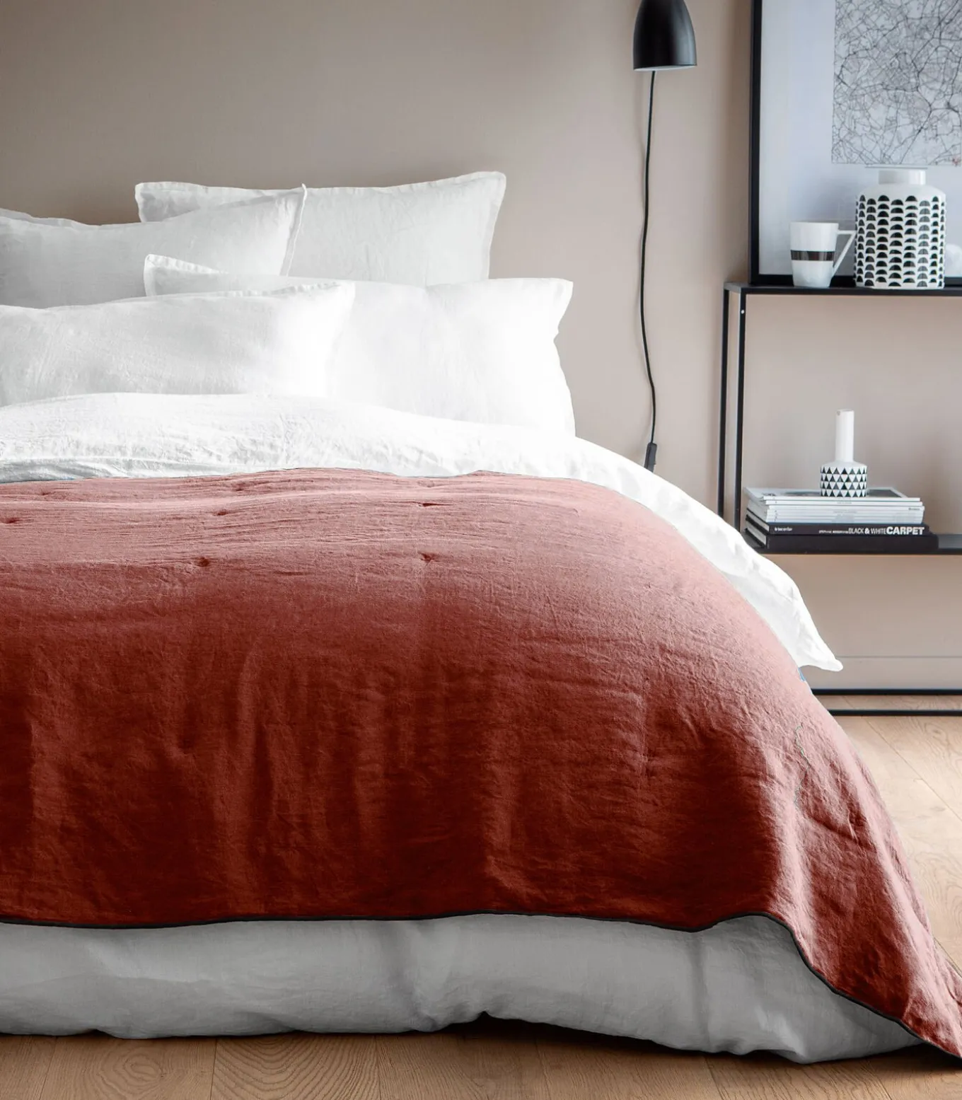 Een passie voor linnen, tot en met de ruit. We hebben gekozen voor gewassen linnen van topkwaliteit (192 g), gewassen in onze ateliers om een uitzonderlijke zachtheid te garanderen. De elegante afwerking met contrasterende bourdon en delicate doorstiksels getuigen van de expertise van onze ateliers in Portugal. De kwaliteitskeuze: topkwaliteit gewassen linnen (192G) en dichtgeweven lange vezels voor een onfeilbare stevigheid. Onze workshop wastechniek maakt het zacht en soepel. 100% polyester vulling (60g).Een design dat bij je past: gebruik je throw aan het voeteneind van het bed of op de bank om comfort en design te combineren. En voor nog meer comfort combineer je hem met onze kussens uit de Rêve de Lin collectie.Made in Portugal: Weven, verven en produceren in Portugal met respect voor mens en milieu.Certificeringen: Dit product is gecertificeerd OEKO–TEX® standaard 100 CQ901–1 IFTH, wat de controle garandeert van resthoeveelheden schadelijke stoffen in zeer lage verhoudingen, zonder gevaar voor de mens. Onze producten worden regelmatig getest door erkende laboratoria om aan deze certificering te voldoen. We zijn ook lid van de BSCI, die goede arbeidsomstandigheden garandeert.