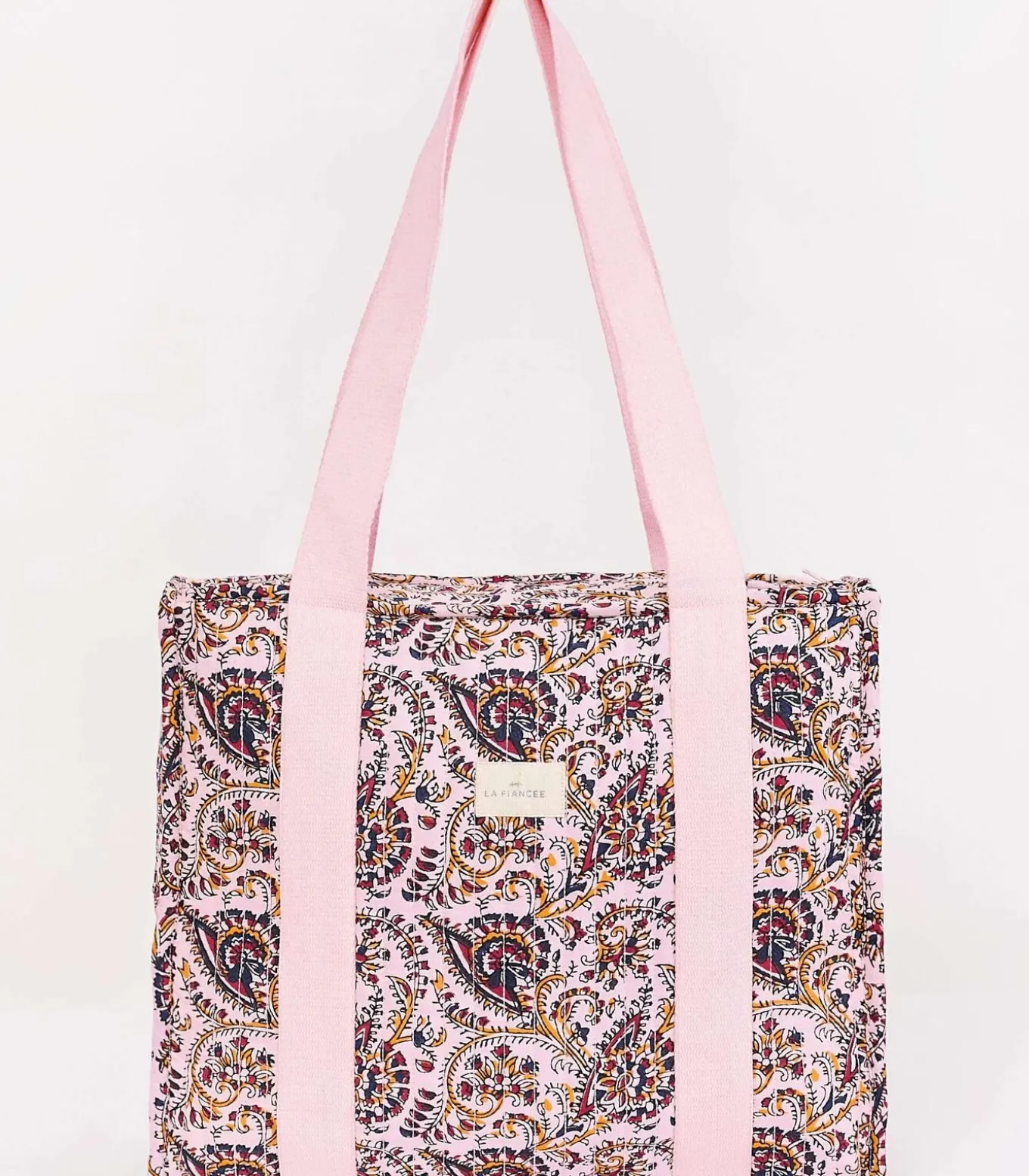 Gewatteerde bedrukte katoenen shopper van biologisch katoen, ideaal voor dagelijks gebruik dankzij het royale formaat en de bedrukte stijl. Praktisch en elegant, gemakkelijk over de schouder te dragen dankzij de lange handgrepen van katoen grosgrain. Het perfecte accessoire om al uw spullen deze zomer mee te nemen. Productdetails: gewatteerde shopper. Bovenkant met ritssluiting. 1 binnenvak. Handgreplengte vanaf de basis: 126 cm. Afmetingen: 35 x 29 x 15 cm.