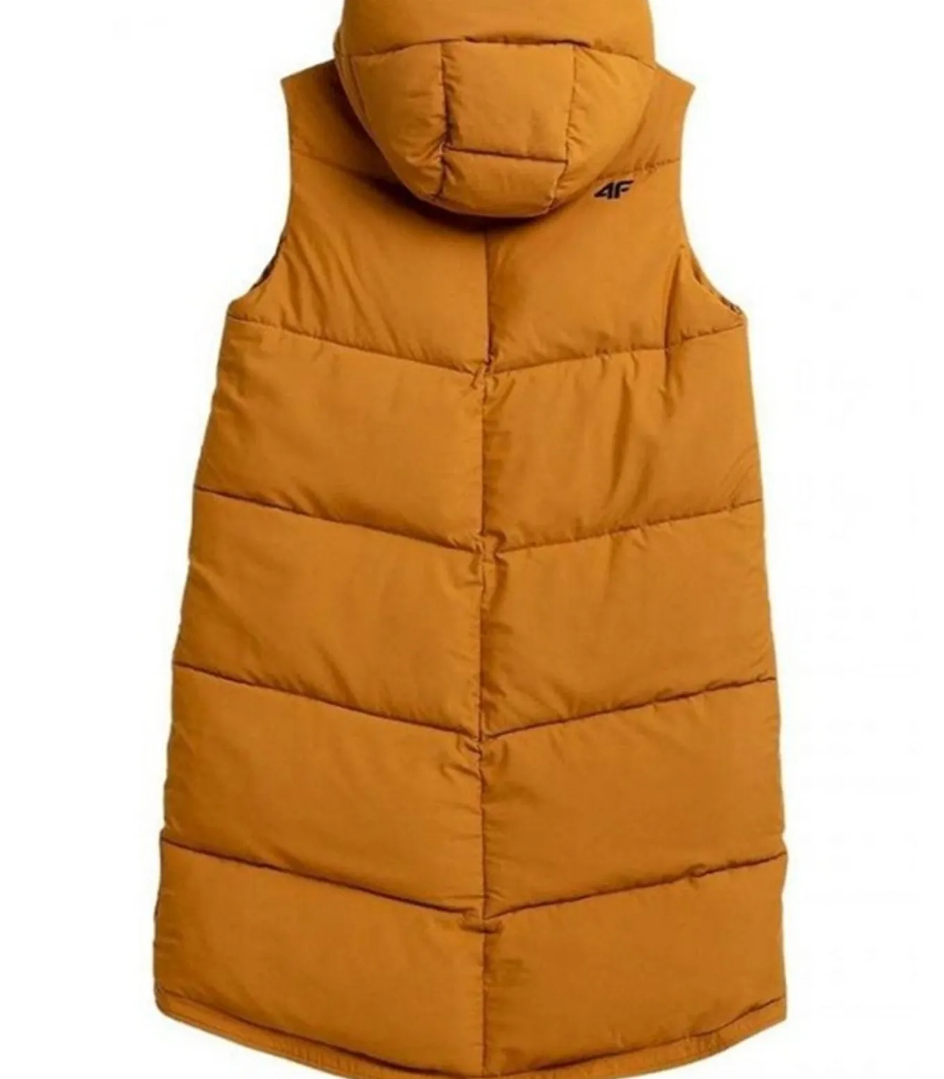 Product Description: H4Z21 – Gi Bruin (Giello Brown) met 100% polyester buitenmateriaal en interieur, inclusief vulling. Dit product kenmerkt zich door een quilted ontwerp met logo en waterafstotende behandeling (hydrofobische impregnatie). Het heeft een mouwloos type en kap met staande kraag, evenals een Windflap. De kap is integraal en bijnaai. De lengte van het jakje bedraagt knie–lengte. Het product telt twee zijzakken die gesloten worden met drukknopen en heeft volledige ritssluiting en tweewegrits. De randen zijn verstelbaar en in XS is de maat 35 inch.