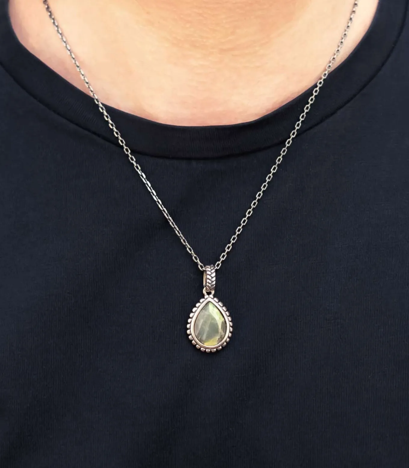 Omdat mannen ook recht hebben op hun eigen sieraden, biedt MES–BIJOUX.fr u een selectie sieraden speciaal voor mannen. Maak uw outfit compleet met onze herenketting “HOLAN1” in 925 sterling zilver.Details: 925 sterling zilveren ketting en hanger bezet met grijs/groene labradoriet.