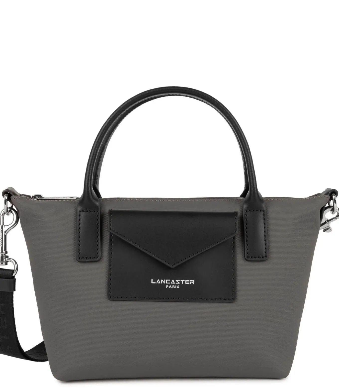Deze handshopper is gemaakt van gecoat canvas met afwerking in rundleer. Ze heeft een voorvak voor kaarten met drukknoopsluiting en een binnenvak met ritssluiting. Ze kan in de hand, over de schouder of crossbody worden gedragen.