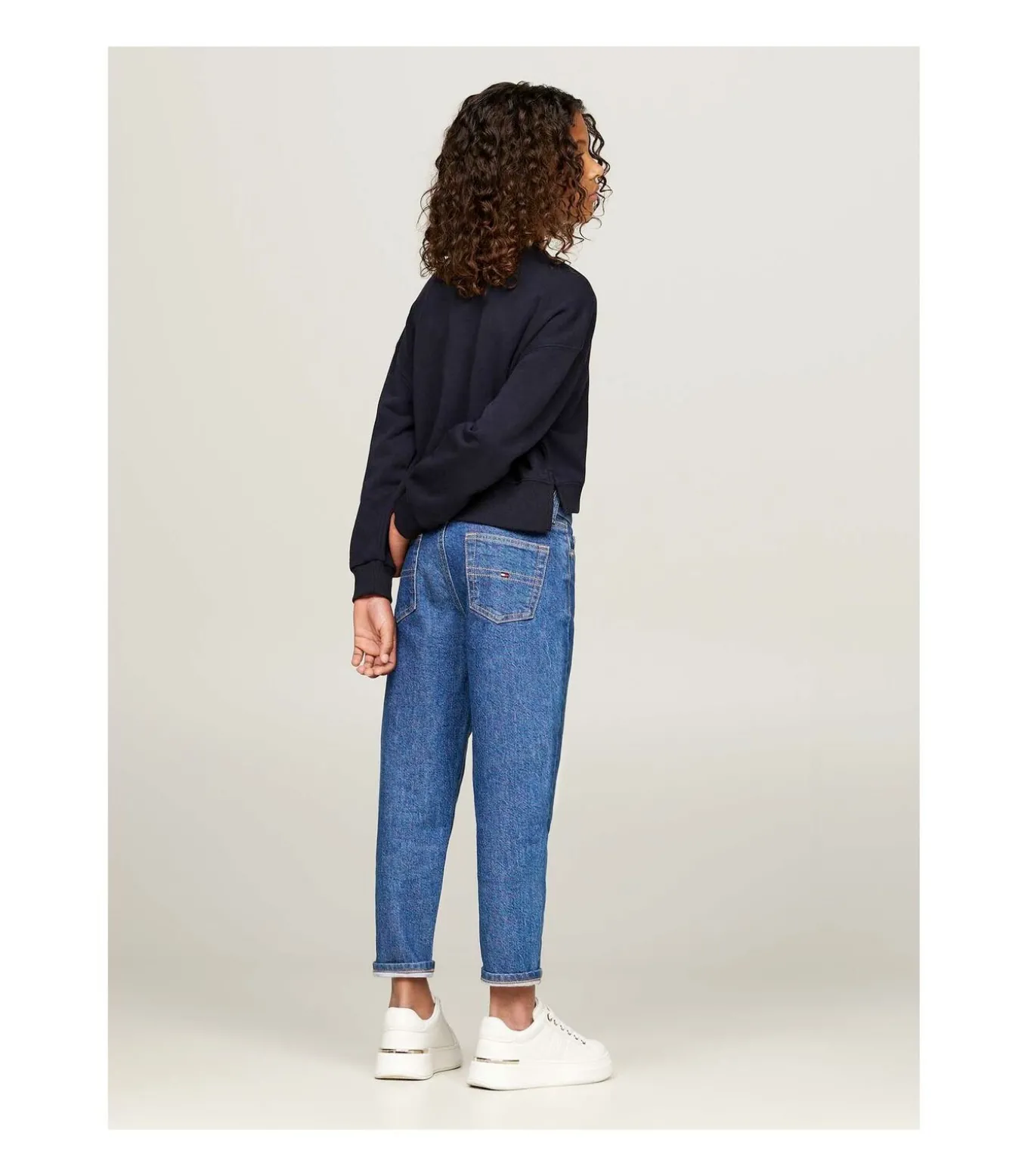 * Kleur: Desert Sky * Mouwen: lang met geribde manchetten en Tommy Hilfiger–vlag geborduurd op de manchet * Halslijn: ronde hals * Pasvorm: regular fit met verlaagde schouders * Details: Tommy Hilfiger NYC–logo geborduurd op de borst, dubbele zoom aan de voorkant , TH–brandingcollectie