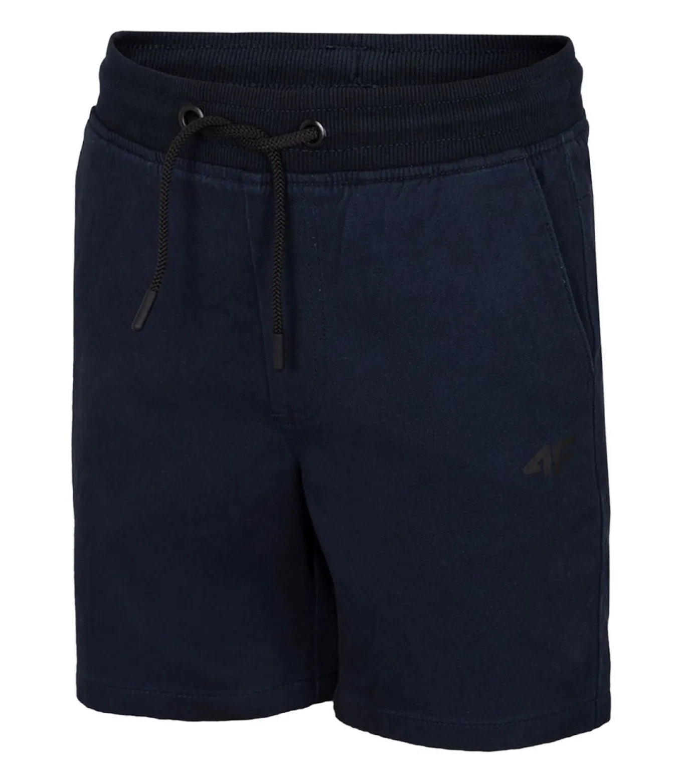 Korte broek met marineblauwe kleur, model HJL22 van 4F, bewerkelijk en comfortabel vanwege de zacht aanrakende katoen en een procentje elastaan. Het ontwerp is voorzien van het merklogo op de voorkant. Deze broek biedt drie zakken: twee bijzijde zakken en één achterzak. De tailleband is zowel koord als elastisch, waardoor je deze losse broek makkelijk aan kan trekken.