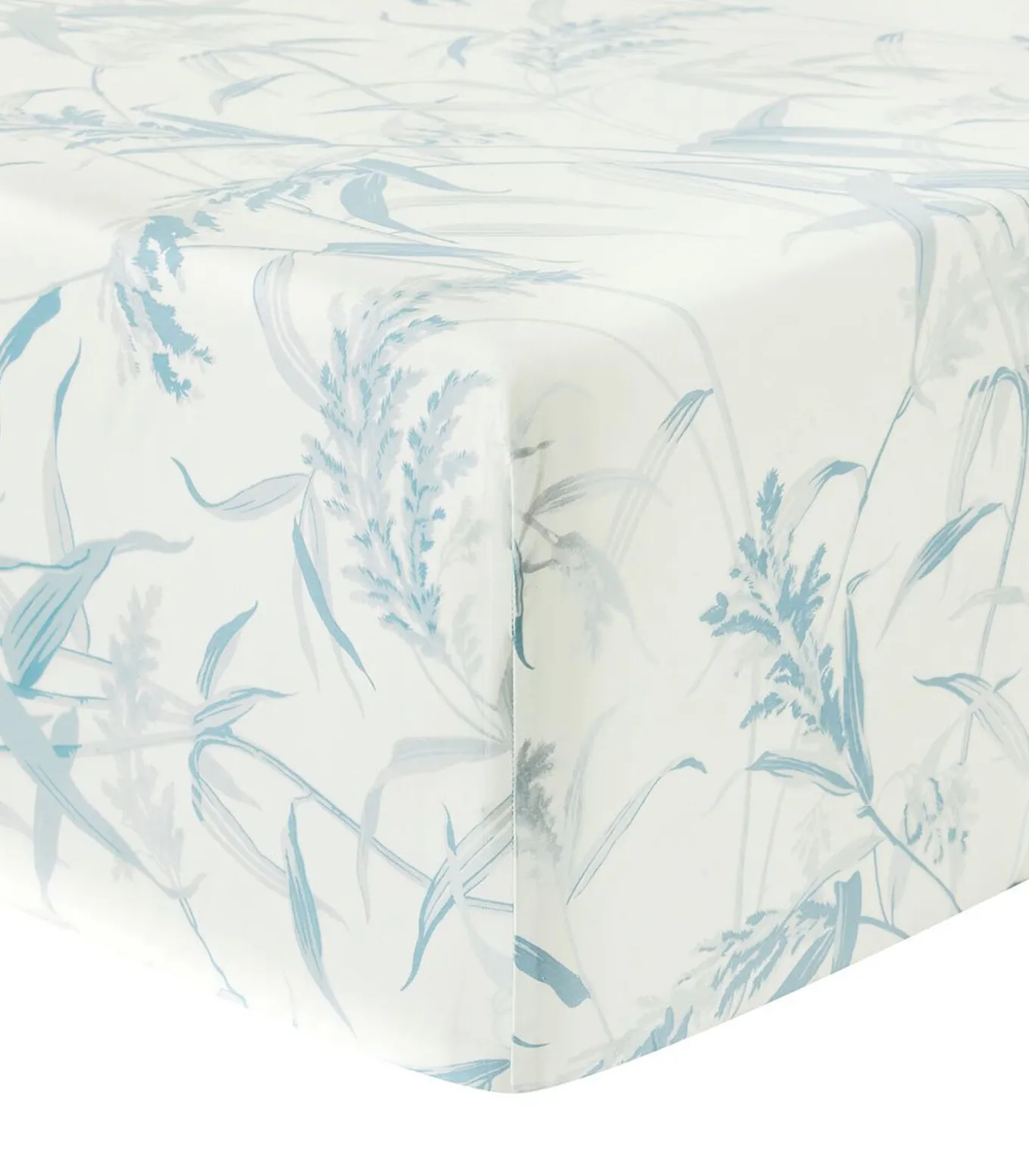 Bedrukking van planten op een ivoorkleurige achtergrond.Hoeslaken met een hoogte van 35 cm