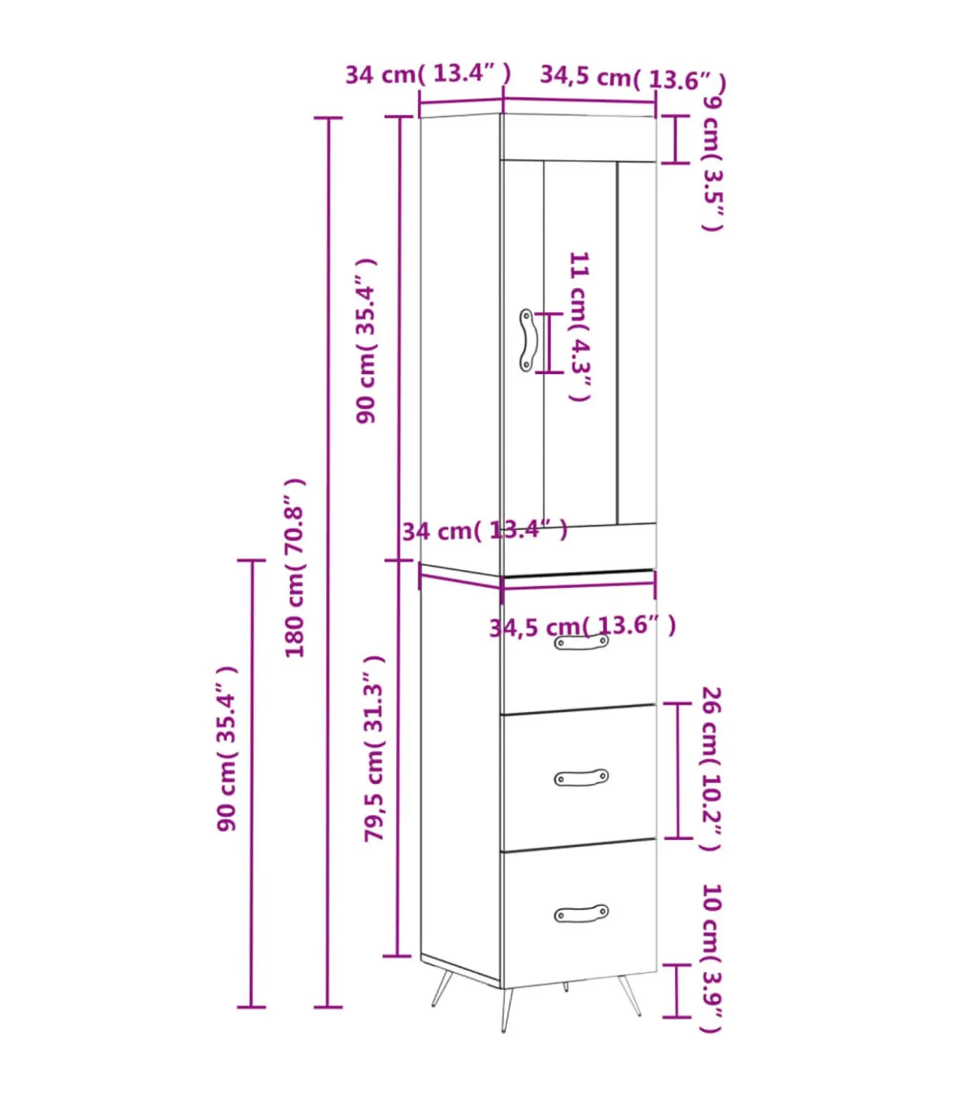 Afmetingen dressoir: 34,5 x 34 x 90 cm (B x D x H)