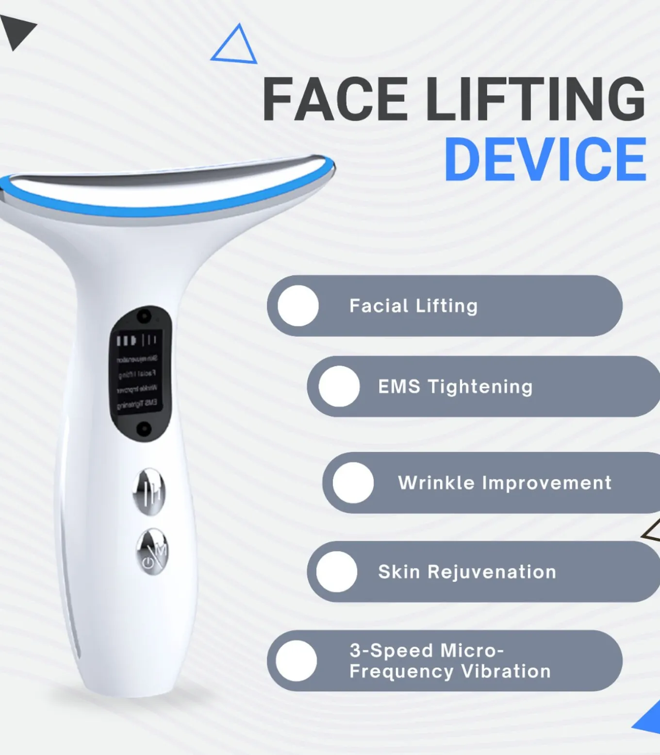 Het Huidverstevigend Apparaat is een geavanceerd beautytool, ontworpen om je gezichtshuid strakker, steviger en gelift te maken. Dit innovatieve apparaat maakt gebruik van geavanceerde technologie om de collageenproductie te stimuleren, het verschijnen van fijne lijntjes en rimpels te verminderen en een jeugdige glans aan je teint te herstellen.Kenmerken:Microcurrent Technologie: Levert zachte elektrische pulsen om de gezichtspieren te stimuleren en de collageenproductie te bevorderen.Rode Lichttherapie: Penetreert de huid om ontstekingen te verminderen, de genezing te versnellen en de huidtextuur te verbeteren.Vibratiemassage: Biedt een ontspannende massage die de bloedcirculatie en lymfedrainage verbetert.Oplaadbare Batterij: Laad het apparaat gemakkelijk op voor draadloos gebruik.Verstelbare Intensiteitsinstellingen: Pas de behandelingsintensiteit aan naar jouw individuele behoeften en huidgevoeligheid.Voordelen:Gelifte en Stevigere Huid: Vermindert hangende huid en herstelt een jeugdige contour van je gezicht.Verminderde Fijne Lijnen en Rimpels: Minimaliseert het verschijnen van fijne lijntjes en rimpels voor een gladder teint.Verbeterde Huidtint en Textuur: Verheldert en egaliseert de huidtint, waardoor je een stralende gloed krijgt.Verbeterde Productabsorptie: Versterkt de effectiviteit van je huidverzorgingsproducten door de absorptie te verbeteren.Ontspanning en Stressverlichting: De rustgevende vibraties en rode lichttherapie kunnen helpen de gezichtspieren te ontspannen en stress te verminderen.