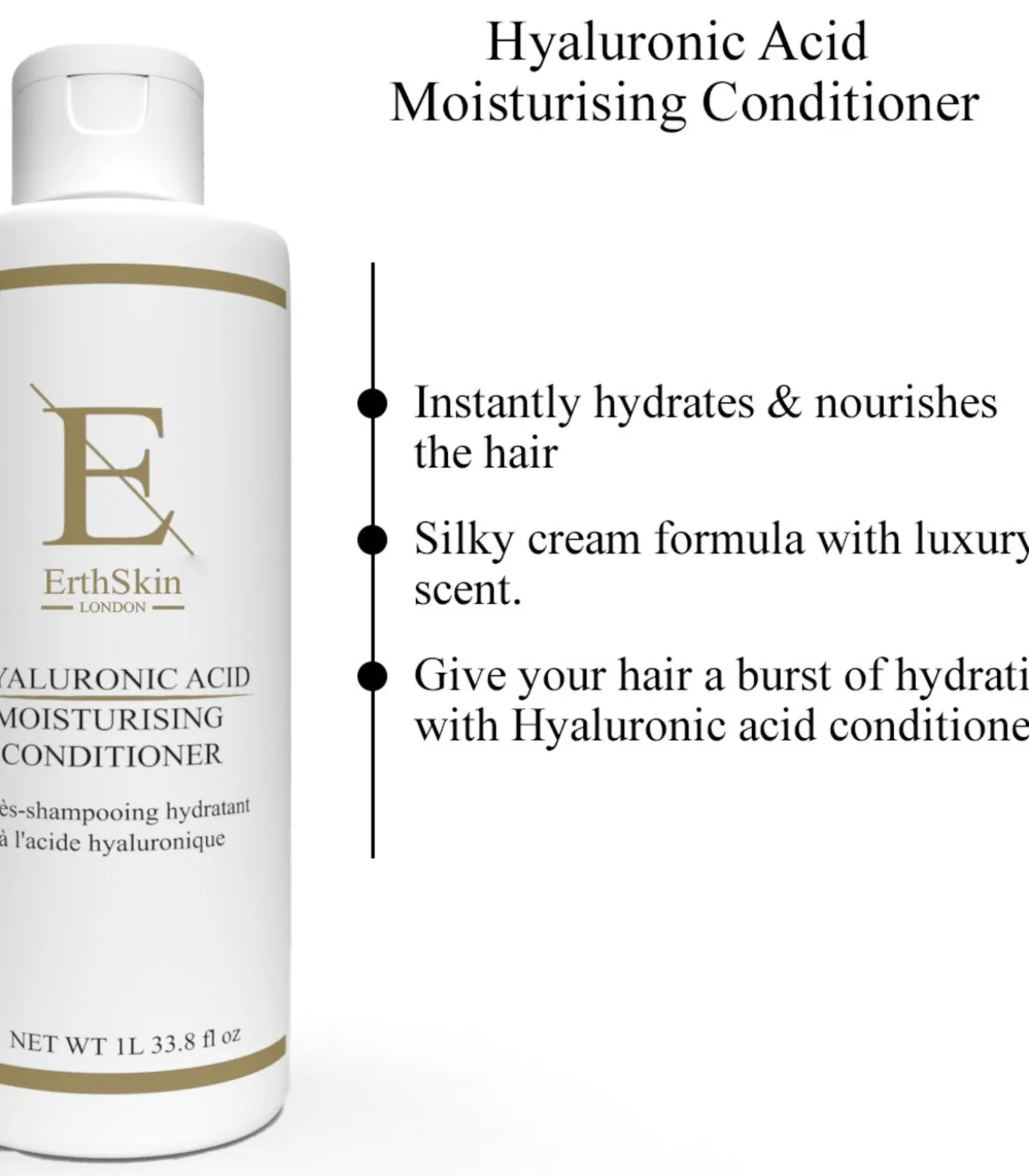 Direct hydrateert en voedt het haar – Verrijkt met hydraterend hyaluronzuur – Zijdezachte crèmeformule met luxe geur. Geef je haar een hydratatieboost met Hyaluronzuur conditioner. Gebruik: Na het wassen, overtollig water uitknijpen. Gelijkmatig door het haar masseren en daarna uitspoelen.