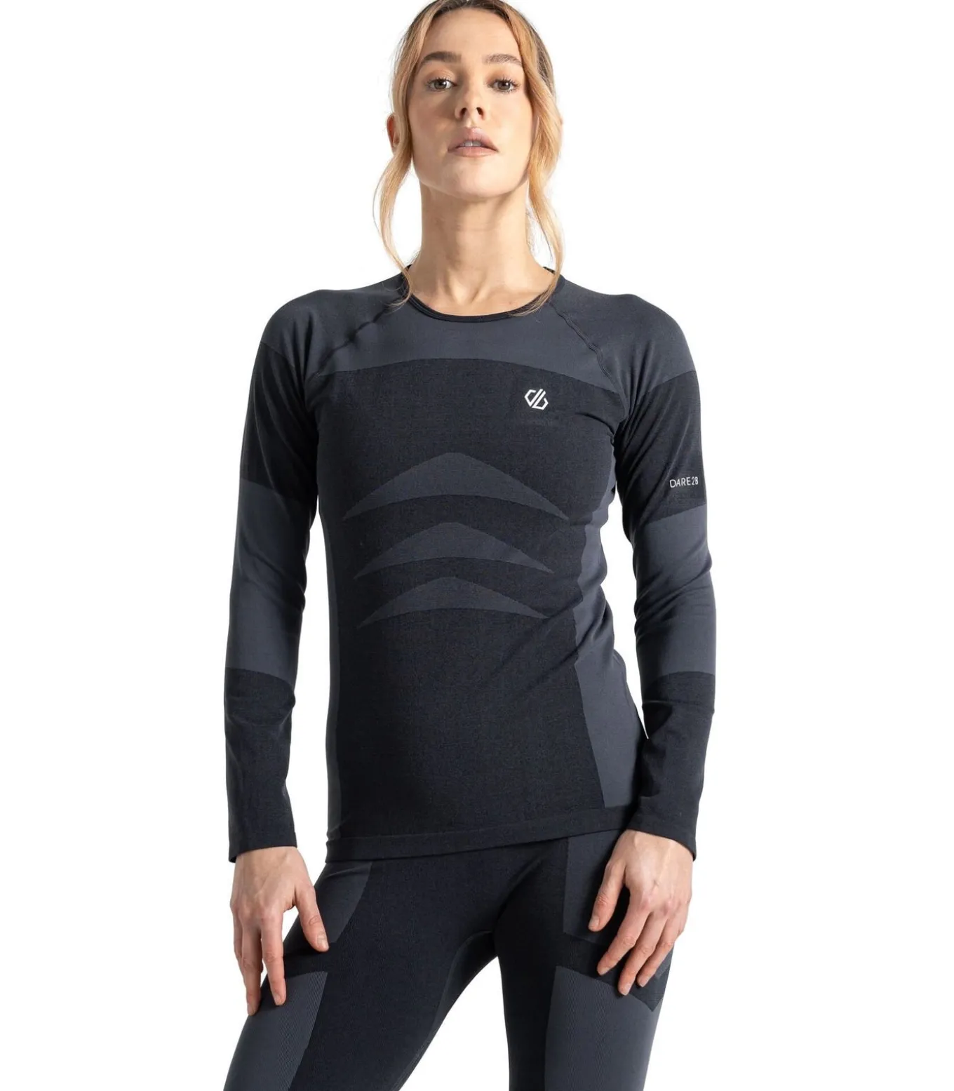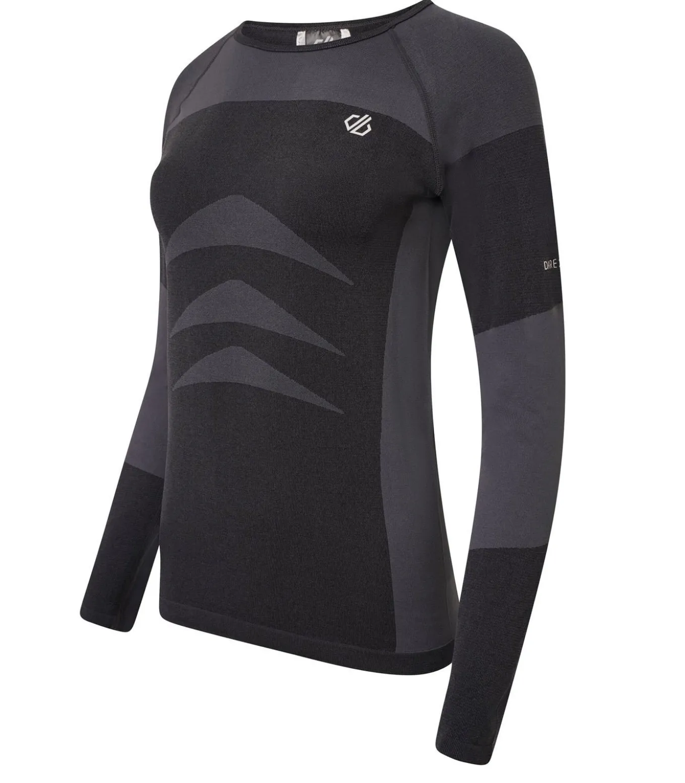 Deze productomschrijving geldt voor de Dare 2B Womens/Ladies In The Zone II Base Layer Set. De set bestaat uit een top en een legging. De top heeft een ronde hals en lange mouwen. Het is voorzien van het logo van het merk in een tweekleurige print met patroon. De stof maakt gebruik van verschillende technologieën, waaronder antibacteriële, anti–geur, ademende, sneldrogende en thermische eigenschappen. Het is superzacht met ventilatiepanelen. De legging heeft een enkellengte en past bij het bodymap silhouet. De tailleband is elastisch met een wijd ontwerp voor comfort. Beide stukken zijn gemaakt met SeamSmart Technology voor gladde naden. Deze basislagenset biedt warmteregulatie en vochtafvoer voor actief gebruik.