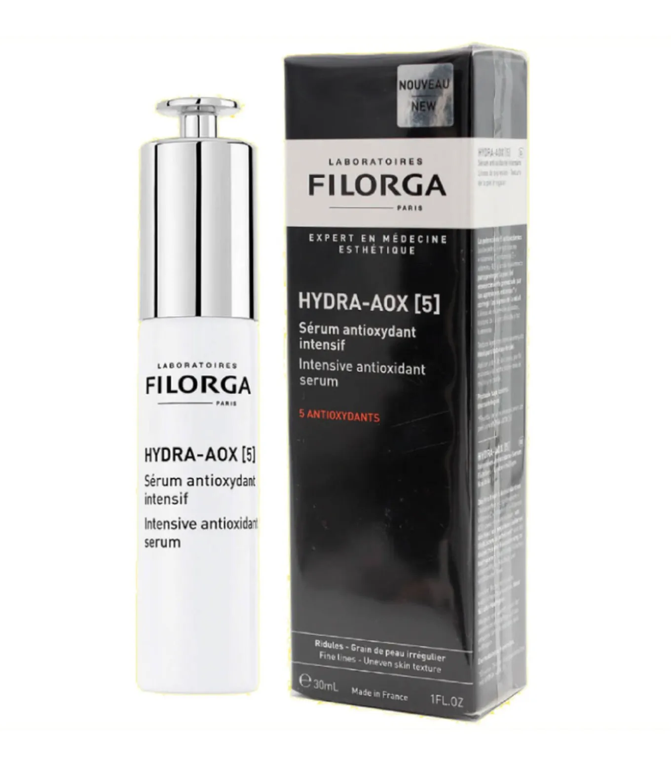 Filorga HYDRA–AOX [5] Intensief Antioxidant Serum 30 ml is een innovatief product dat veroudering van de huid door externe invloeden tegengaat. Dit serum combineert de effectiviteit van vijf krachtige anti–aging antioxidanten, waaronder astaxanthine, vitamine C en hyaluronzuur. Deze belangrijke ingrediënten werken samen om de huid te beschermen tegen oxidatieve stress, die verantwoordelijk is voor 80% van de huidveroudering, terwijl ze fijne lijntjes verzachten en de huidstructuur verfijnen. Diepe hydratatie en straling zijn vanaf de eerste dagen van gebruik zichtbaar. Dit intensieve antioxidantserum Filorga HYDRA–AOX [5] 30 ml is ideaal voor huid die wordt blootgesteld aan omgevingsfactoren zoals vervuiling of blauw licht. Het gepatenteerde antioxidantcomplex beschermt de huid tegen vrije radicalen en bevordert huidherstel. De formule bevat vitamine B3, ergothioneine en vitamine E, die zorgen voor een anti–aging effect en de huidkwaliteit verbeteren, wat resulteert in een helderder en gelijkmatiger huidbeeld. Dit product is geschikt voor alle huidtypes en is dermatologisch getest om de verdraagzaamheid te waarborgen. Met zijn lichte, sensorische textuur valt Filorga HYDRA–AOX [5] op door zijn vermogen om diep te hydrateren en de poriën te verfijnen. De toevoeging van hyaluronzuur met een laag moleculair gewicht helpt de huid op te vullen, terwijl de stabiele formule langdurige resultaten biedt zonder de kleur of textuur van het product te veranderen. Filorga HYDRA–AOX [5] 30 ml is de ideale oplossing om de effecten van esthetische behandelingen te verlengen en de huid zichtbaar jonger, steviger en stralender te maken. Gemaakt in Frankrijk biedt dit serum dag na dag bescherming van hoge kwaliteit voor je huid.