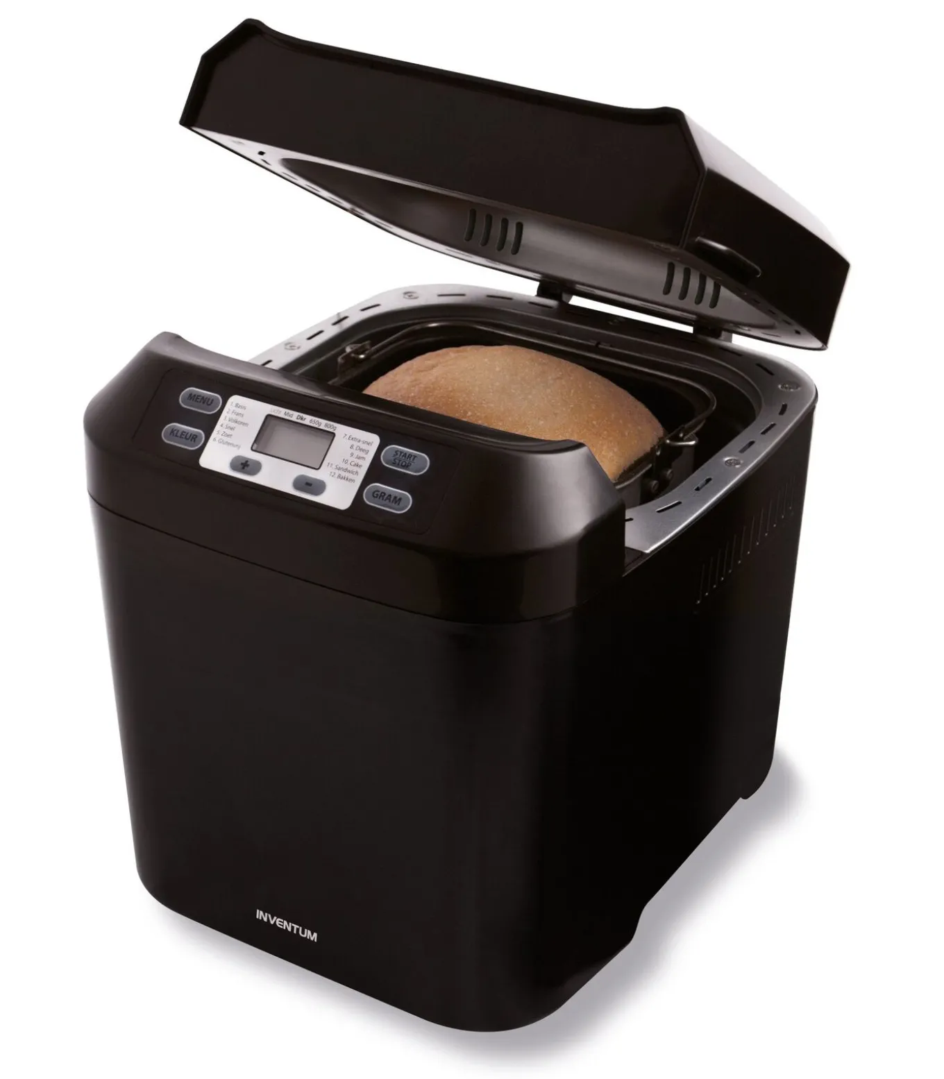 Bak je eigen brood met de Inventum broodbakmachine. De machine is heeft 12 programma’s, is volledig automatisch, heeft een instelbare korstkleur, is geschikt voor glutenvrij brood en is geschikt voor het maken van 800 gram brood per keer.