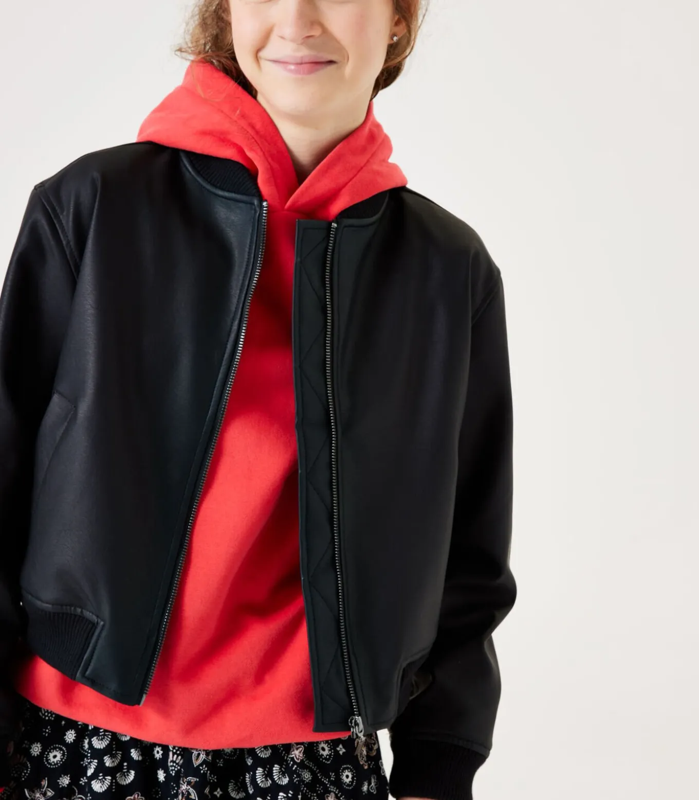 Leather look bomberjack met steekzakken. Een trendy item dat niet mag ontbreken in jouw garderobe! Deze bomber heeft lange mouwen, een ritssluiting, een bomberkraag en een loose fit. Dit item is gemaakt van 100% polyester.