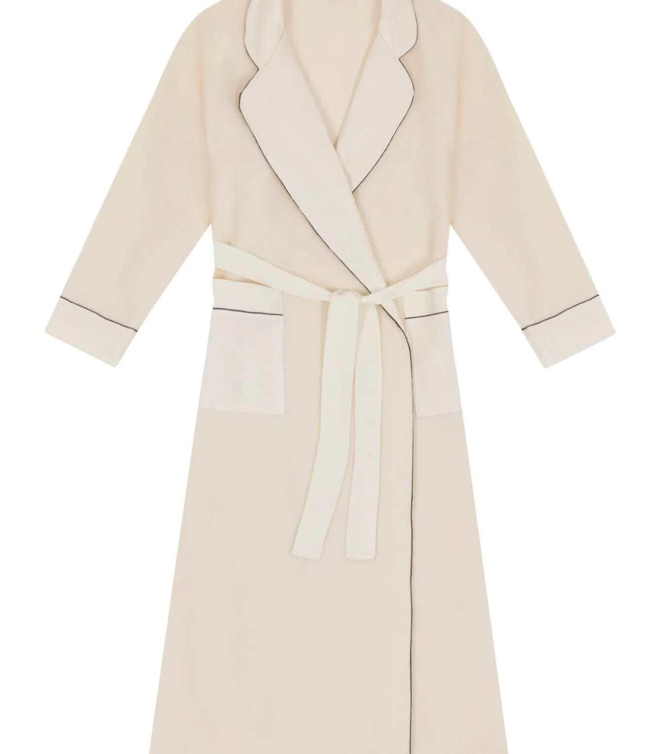 –Satijnen biezen zijn netjes afgewerkt aan de binnenkant van de kraagWanneer draag je onze GABRIELLE 660 jacquard microfleece en viscose badjas?