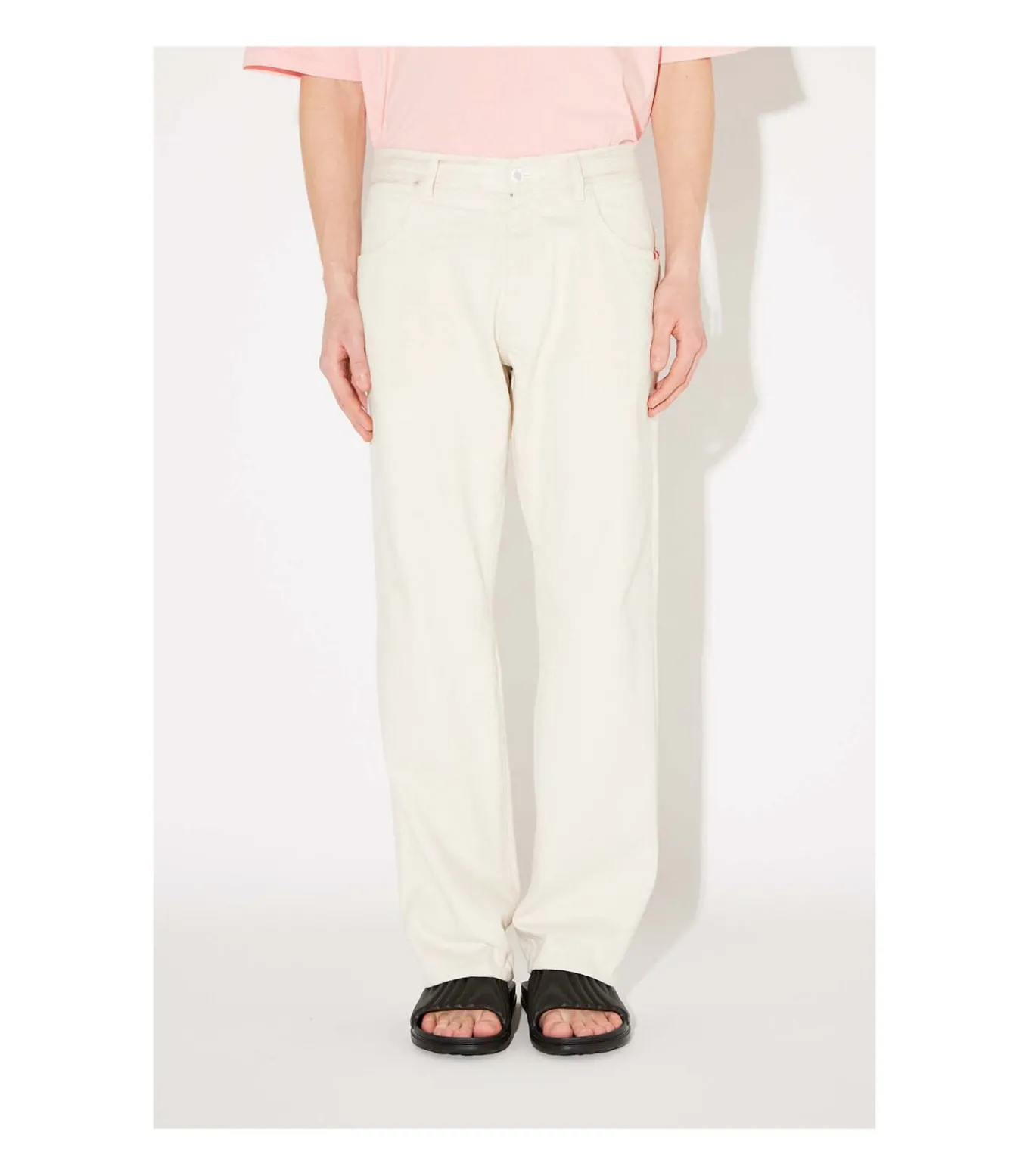 * Kleur: Ecru * Samenstelling: 100% katoen * Pasvorm: Rechte pasvorm voor een recht en comfortabel silhouet * Sluiting: Sluiting met logoknoop en rits * Details: Effen selvedge denim met natuurlijk effect. Lus van logostof op de achterkant, achterzakken met contrasterend borduurwerk. * Gebruik: Perfect voor een verfijnde, casual look, ideaal om te combineren met sneakers of loafers voor een veelzijdige en verfijnde outfit.