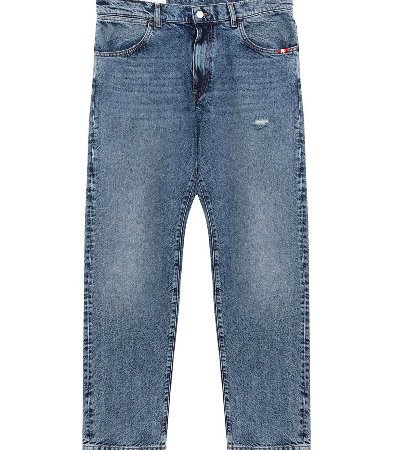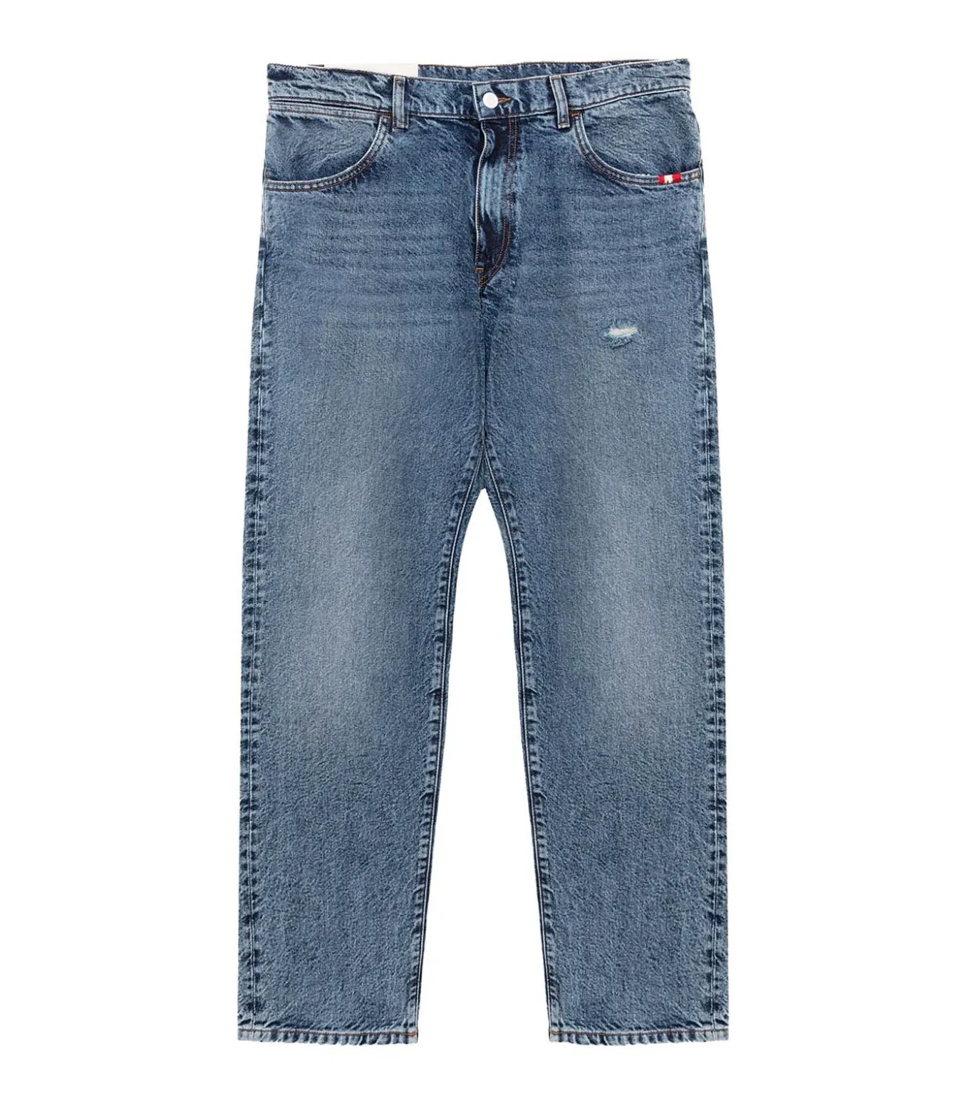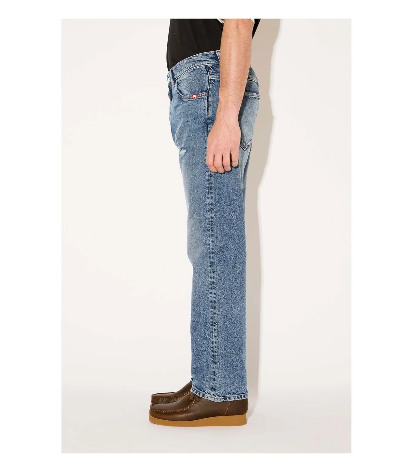 Kleur: Denim Samenstelling: 100% Katoen Pasvorm: Losvallend Sluiting: Logoknoop en rits Details: Medium wash marble stone denim jeans met lichte kreukeffecten, used–effect scheuren, label en logolusje op de achterkant. Voor– en achterzakken met contrasterend borduursel. Gebruik: Perfect voor een relaxte, urban look, ontworpen voor wie houdt van een vintage en comfortabele touch in zijn dagelijkse outfit.