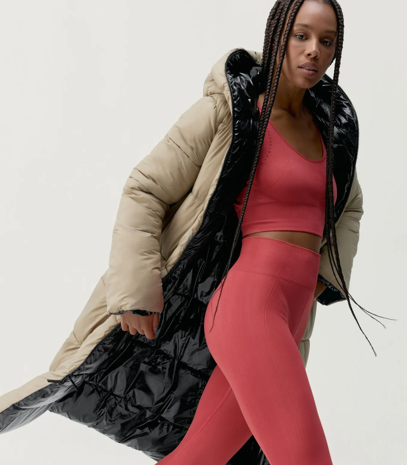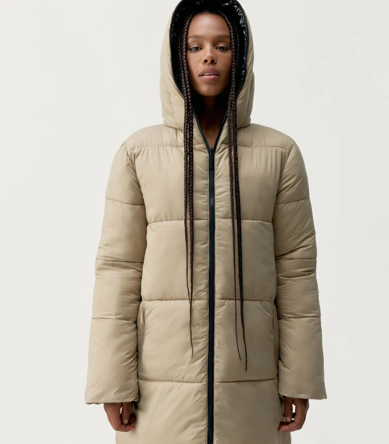 Tweekleurige omkeerbare gewatteerde jas. Functioneel ontwerp met twee kleuropties: je kunt kiezen voor een klassieke matte stof of een stijlvolle gewaxte stof. Capuchon met dubbele ritssluiting voor volledige thermische isolatie. Zakken aan beide zijden met ritssluiting. Verstelbare zoom met zijsplitten. 100% veganistische vulling. Windstopper Waterafstotend Hoge zonbescherming Warm Veganistisch gewatteerd Omkeerbaar