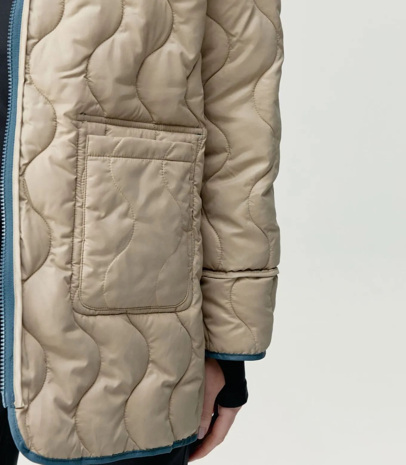 Omkeerbare tweekleurige gewatteerde jas. Windafstotende stof met thermische isolatie. Dubbele cursor ritssluiting. Opgestikte zakken aan beide zijkanten. Functioneel ontwerp met twee kleuropties om mee te pronken en super comfortabel. 100% veganistische vullingWindafstotendWaterafstotend Hoge zonnebeschermer WarmVeganistisch gewatteerd Omkeerbaar