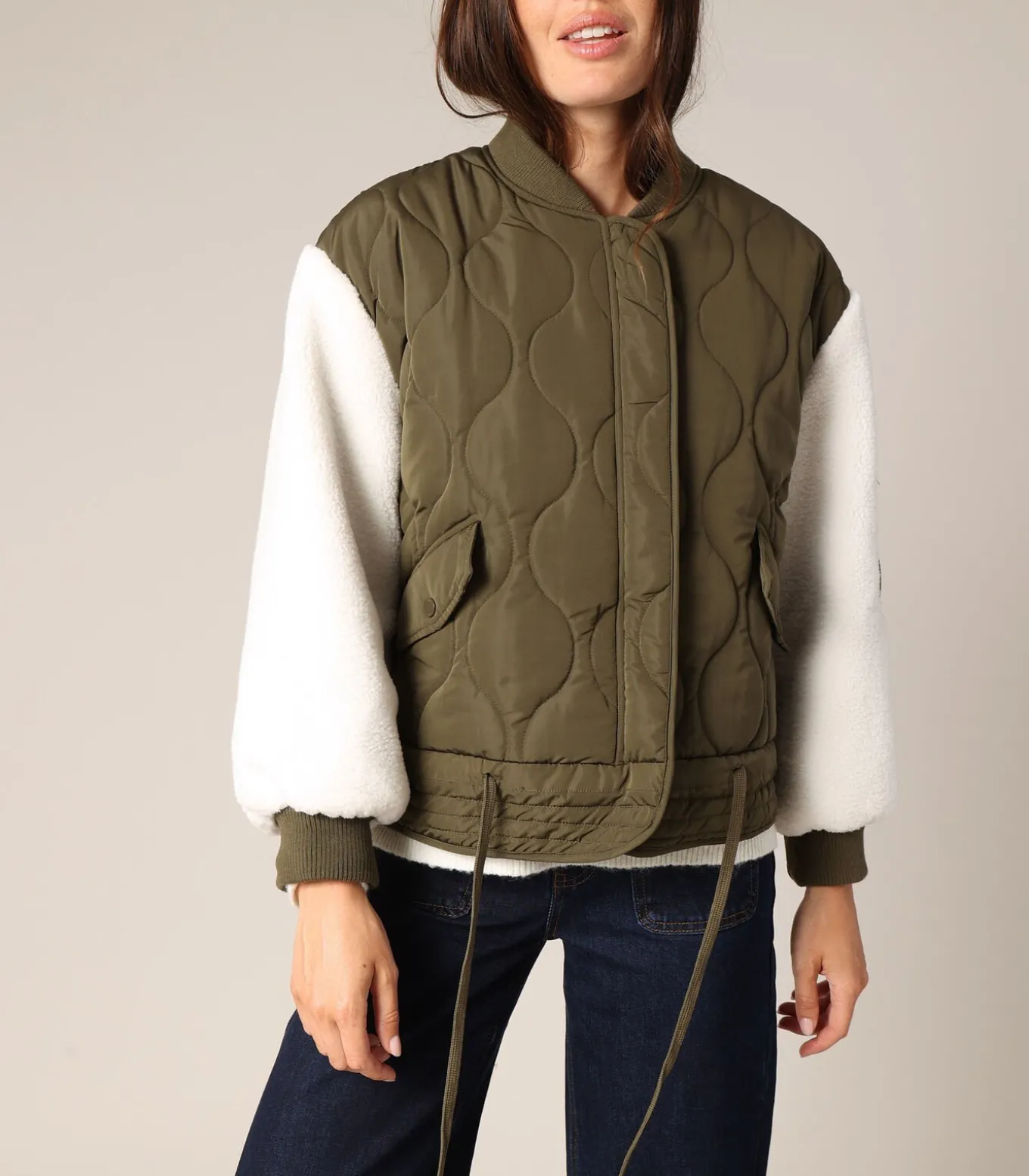 Be the first to review “JAYLINA – Tweekleurige gewatteerde jas met sherpa-effect mouwen” Reactie annuleren