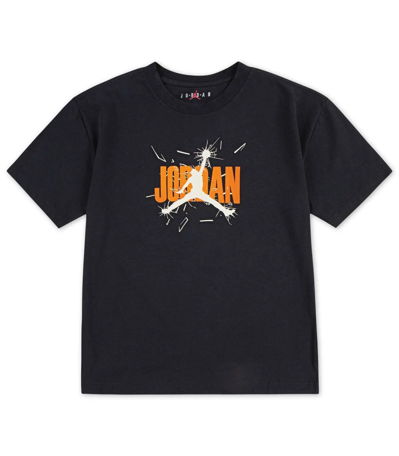 Kleur: Off Noir Samenstelling: 100% katoen Mouwen: kort Halslijn: ronde hals Pasvorm: normale pasvorm Details: print op de voorkant met Jordan–logo en grafische afbeelding met gebroken glas–effect, print op de achterkant met Air Jordan 1985–afbeelding Gebruik: ideaal voor jonge basketbalfans, perfect voor school, vrije tijd en sportactiviteiten