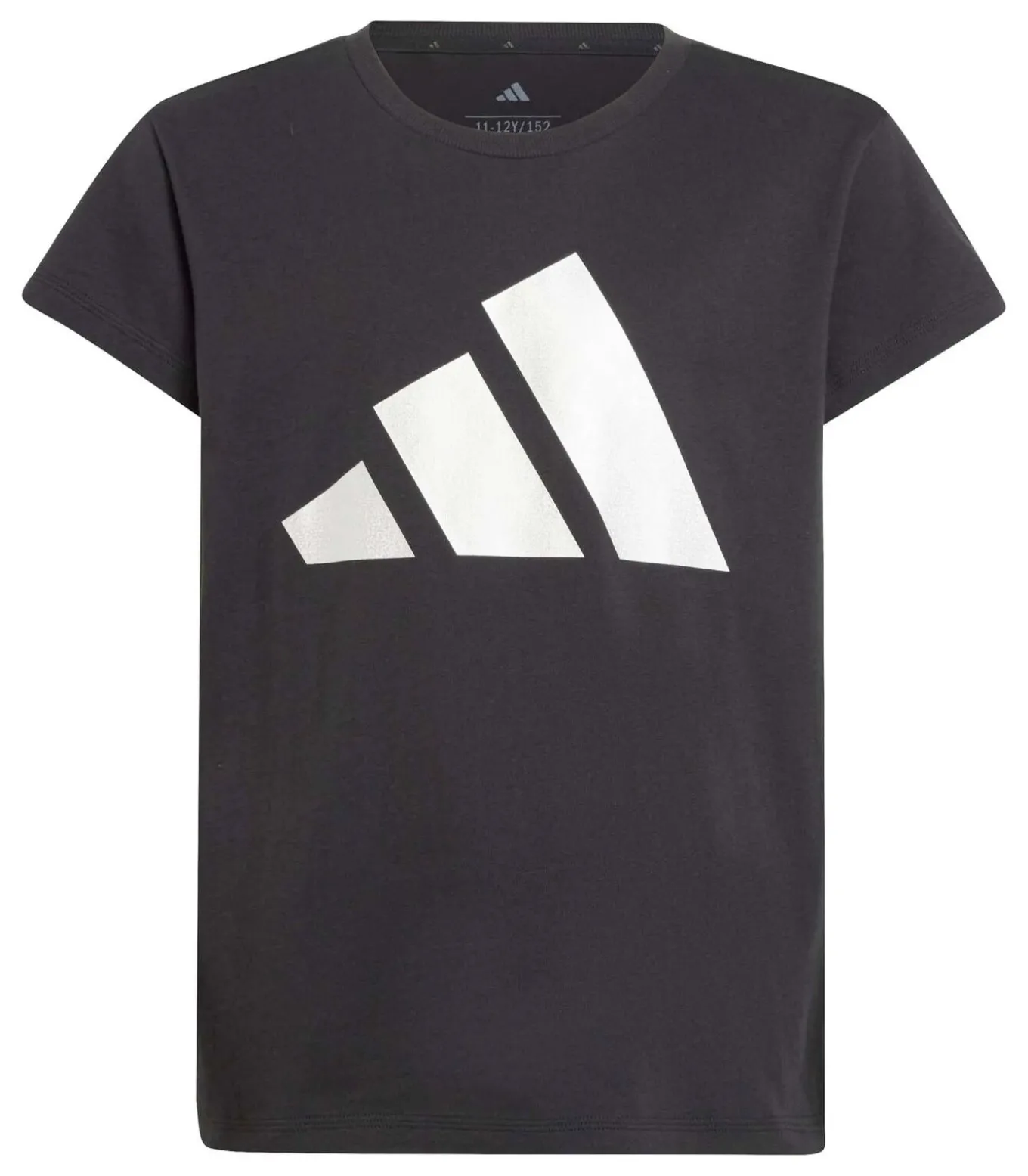 Kleur: Zwart/Zilver Metaalsamenstelling: 100% katoen Mouwen: Kort Halslijn: Ronde hals Pasvorm: Normaal Details: Het adidas Sport JG Glam Tee T–shirt is ontworpen voor iedereen die zelfs op de meest casual momenten wil schitteren. Het oversized adidas–logo met metallic afwerking voegt een glamoureuze en moderne touch toe, perfect voor een sportief–chique look. De klassieke snit en het zuivere katoenen jersey garanderen zachtheid en bewegingsvrijheid in elke situatie. Gebruik: Ideaal voor school, vrije tijd of een avondje uit met vrienden. Dit T–shirt combineert dagelijks comfort met een opvallende stijl, helemaal in de adidas junior–stijl.